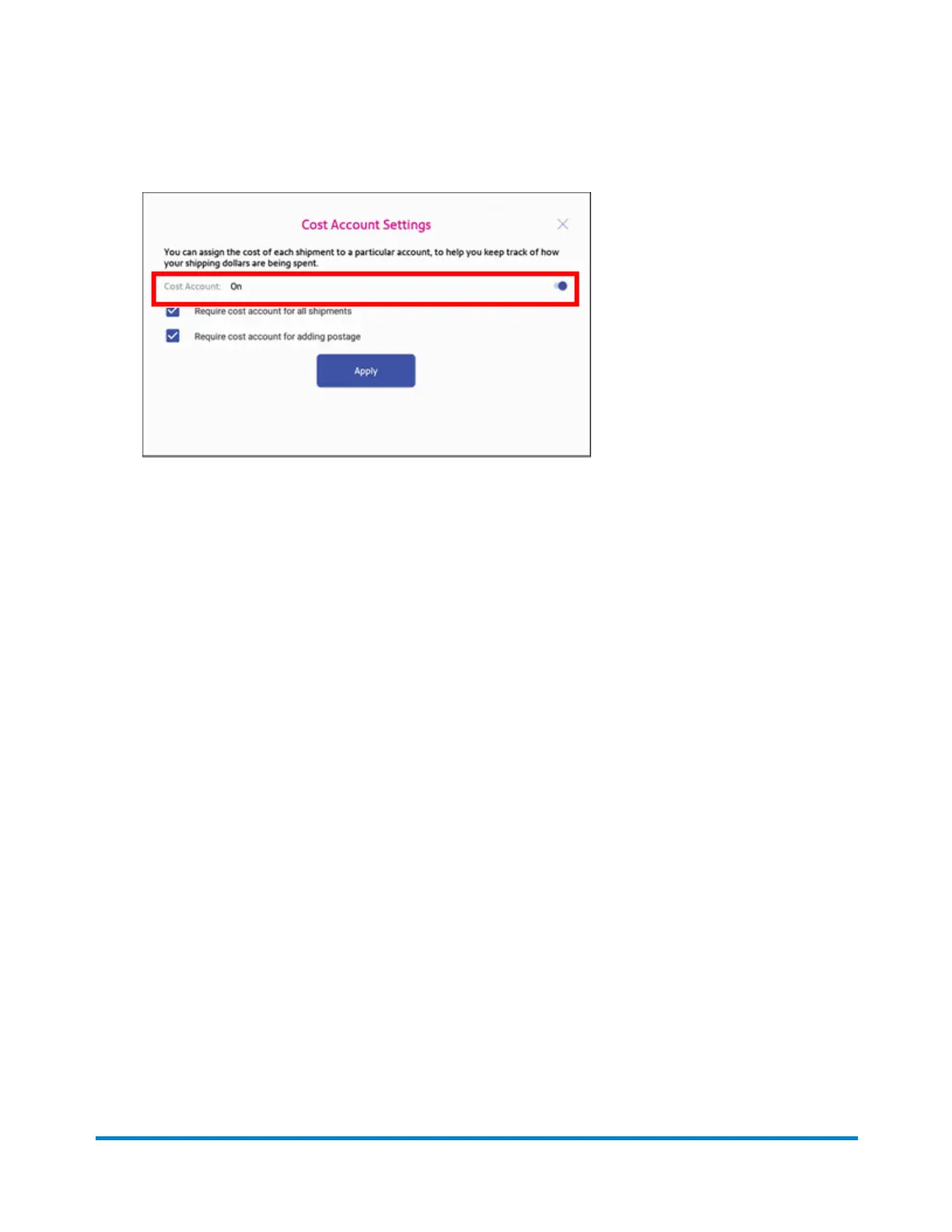 3. To enable, tap the slider next to Cost Account and slide it to the right so that it turns blue.