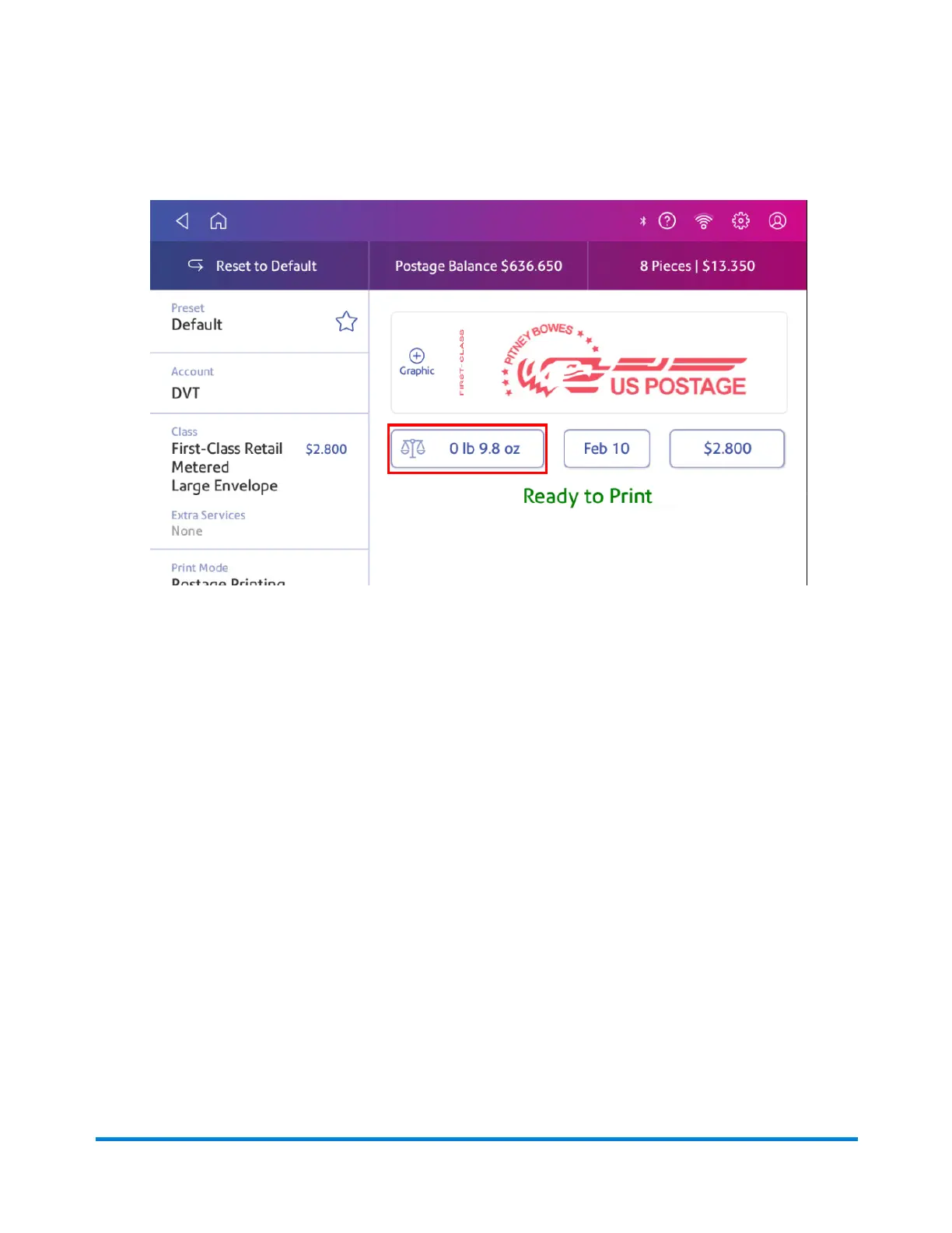 11. Insert the envelope into the device. The device prints the postage .