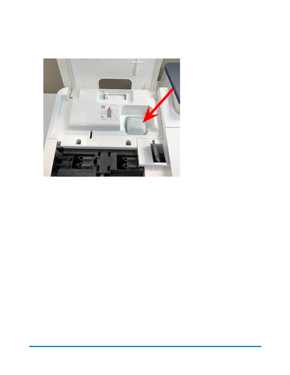 2. Open the feeder access cover to access the moistener bottle.