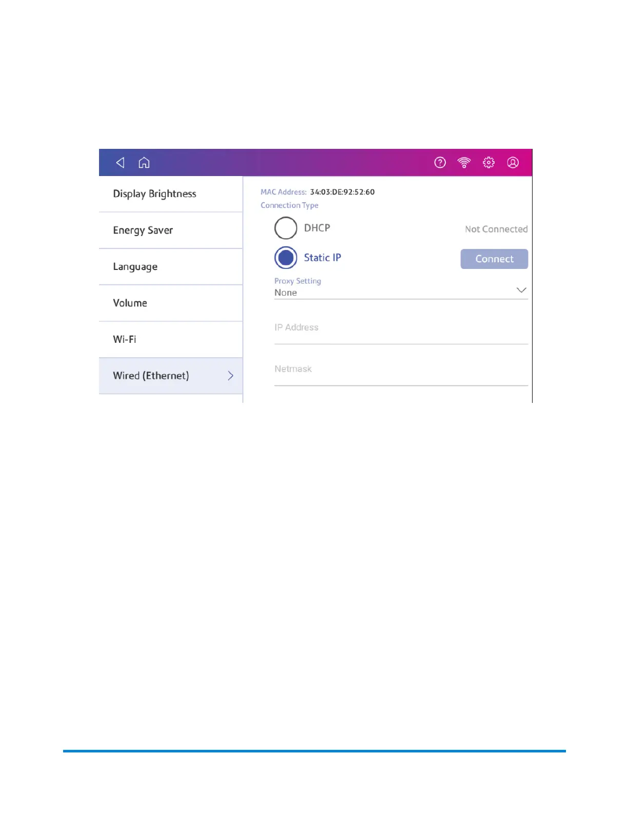 5. Enter the settings you obtained in step 4 for the IP Address, Netmask, Gateway, and DNS