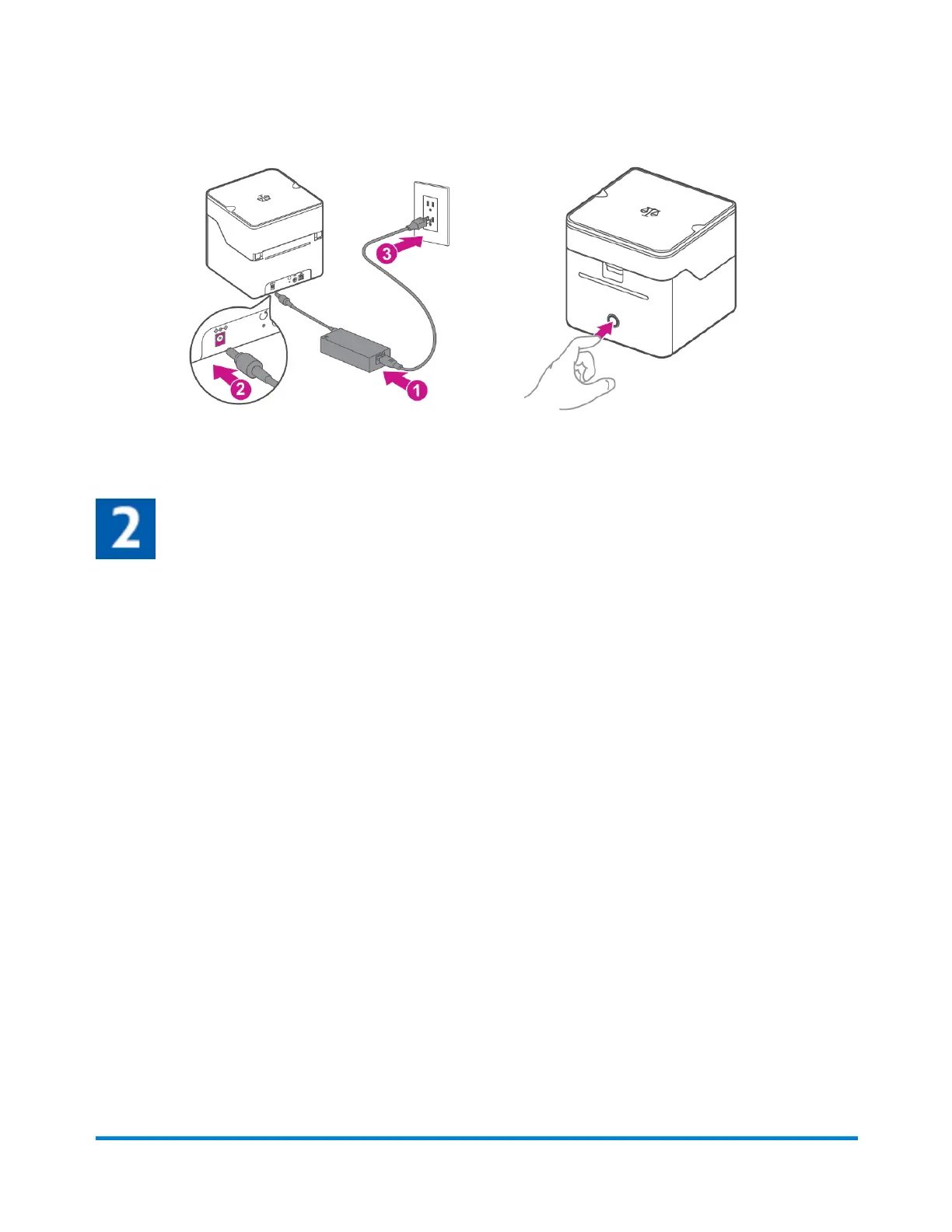 3. Connect the device to a power source and press the power button. The LED will light up orange