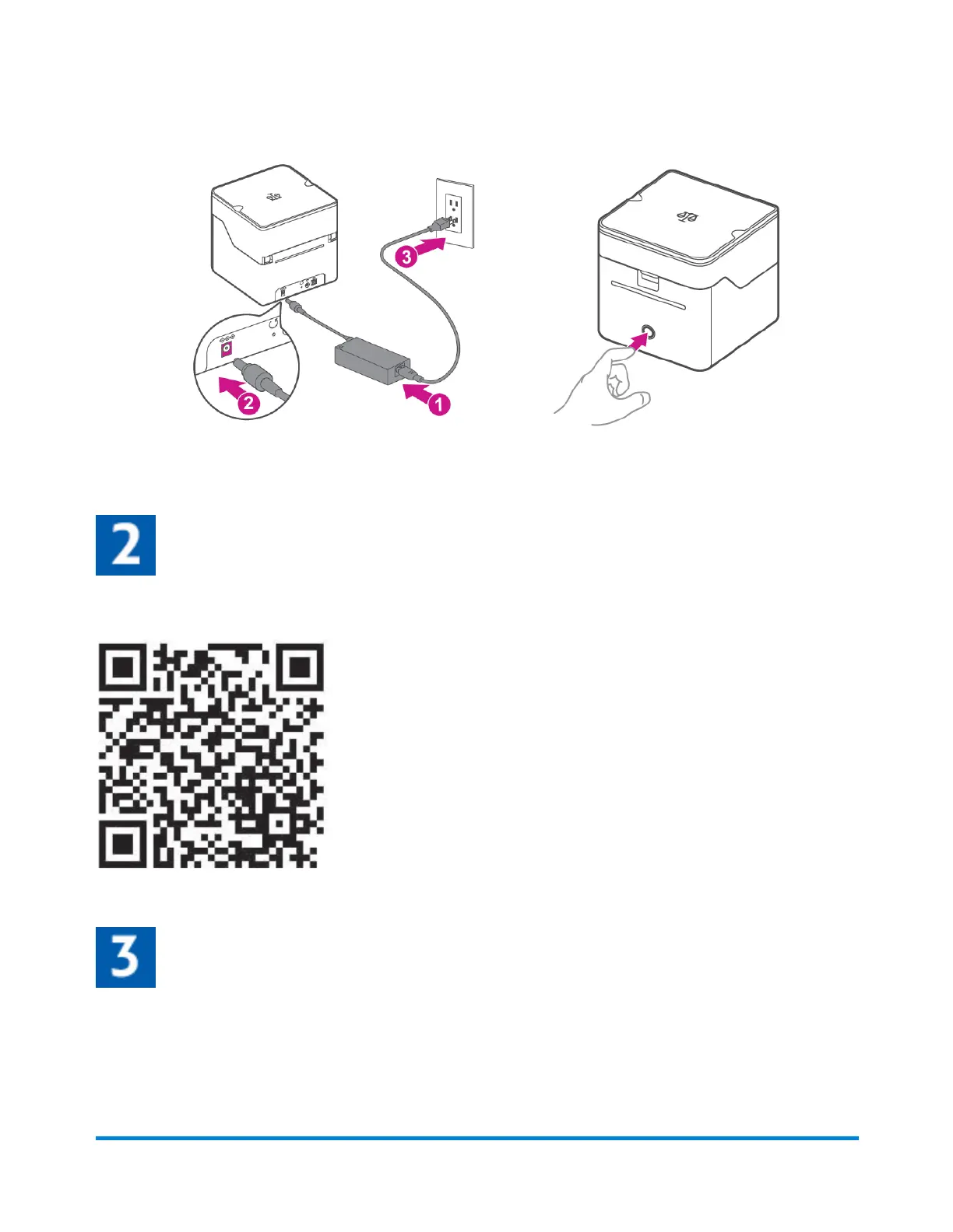 2. Connect the device to a power source and press the power button. The LED will light up orange