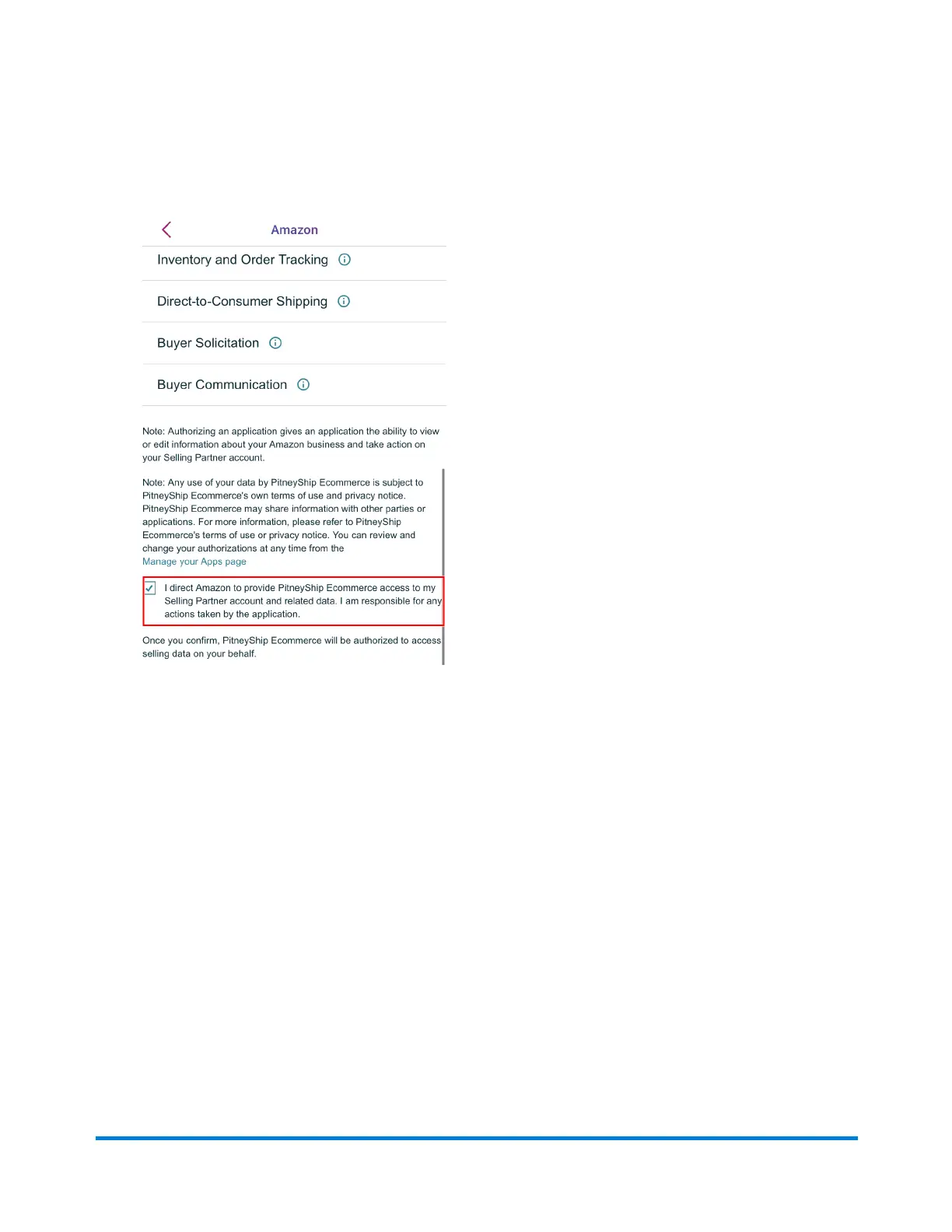 6. Tap the check box to allow the PitneyShip mobile app access to your Amazon Selling Partner