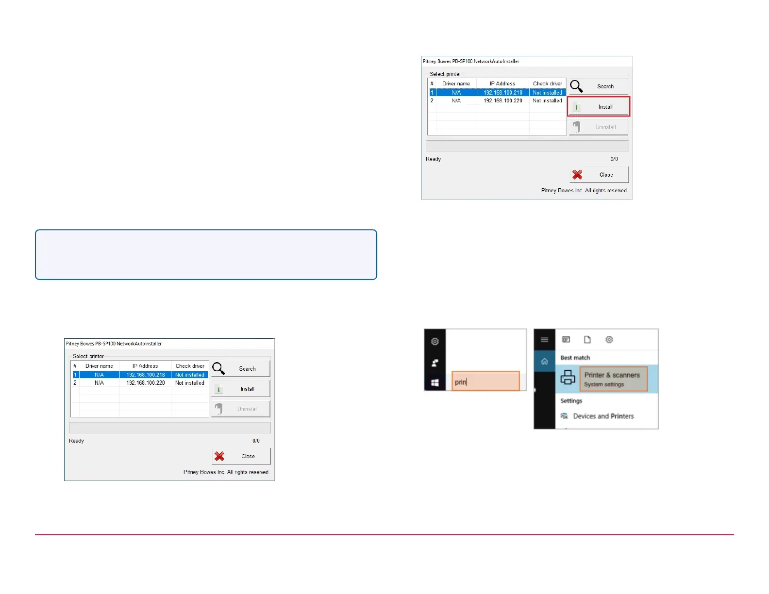 2. Select the PB-SP100 Printer Driver for Network installation -