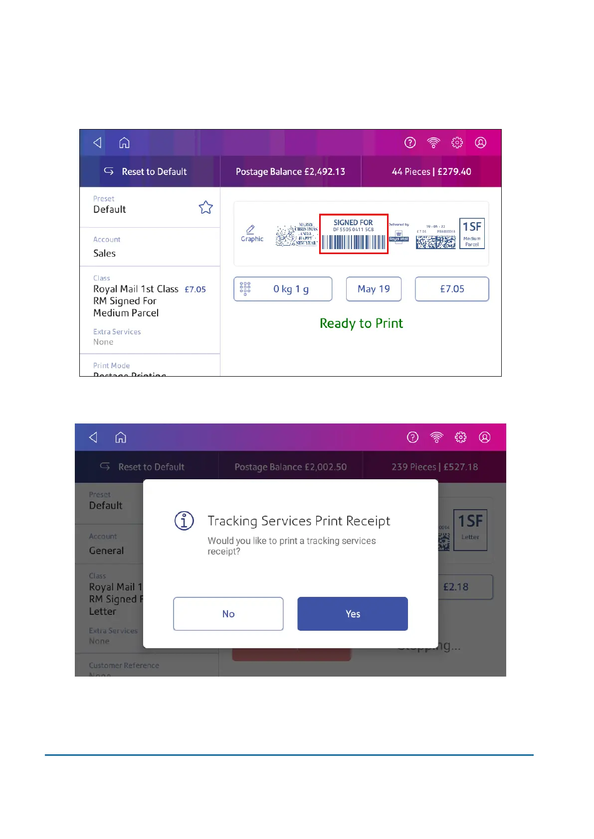 10. Tap Yes if you want to print a receipt as each mailpiece prints. You can turn receipt prompts off,