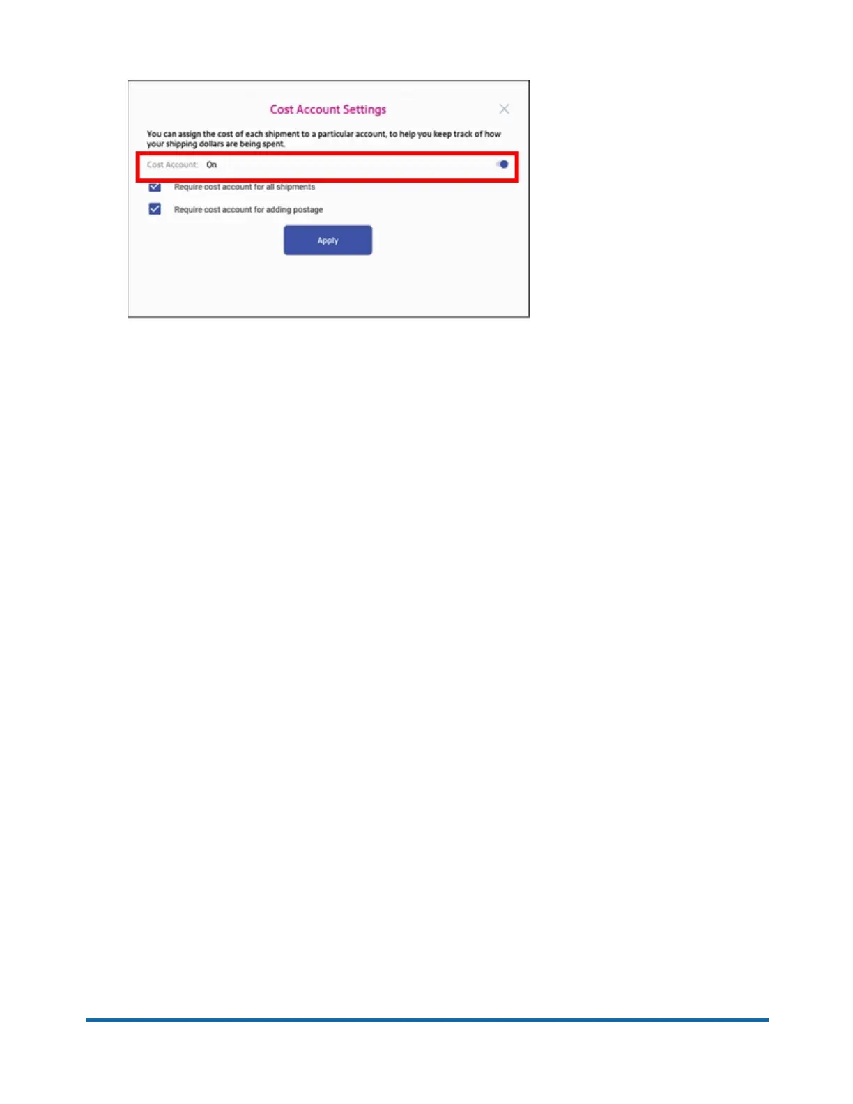 3. To enable, tap the slider next to Cost Account and slide it to the right so that it turns blue.