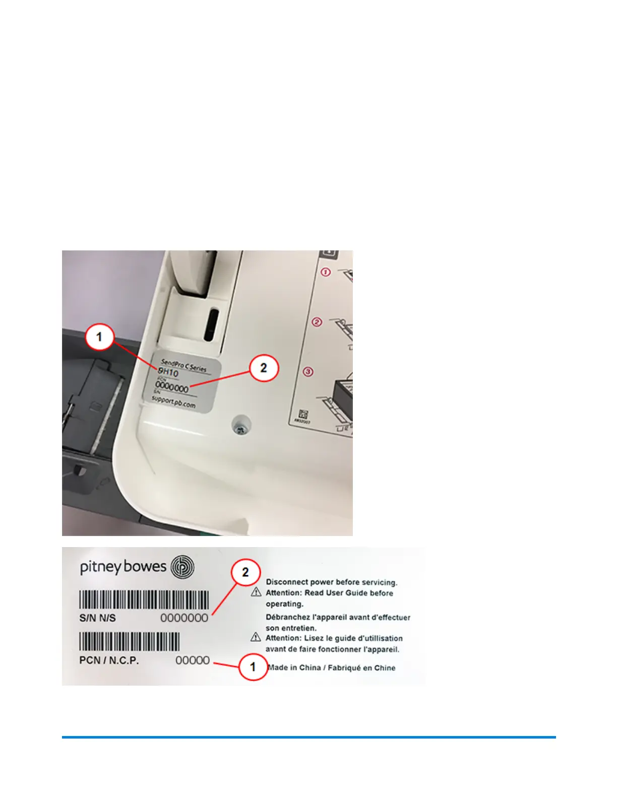 To locate the (1) Product Code Number (PCN) and the (2) 7-digit serial number, check the label on