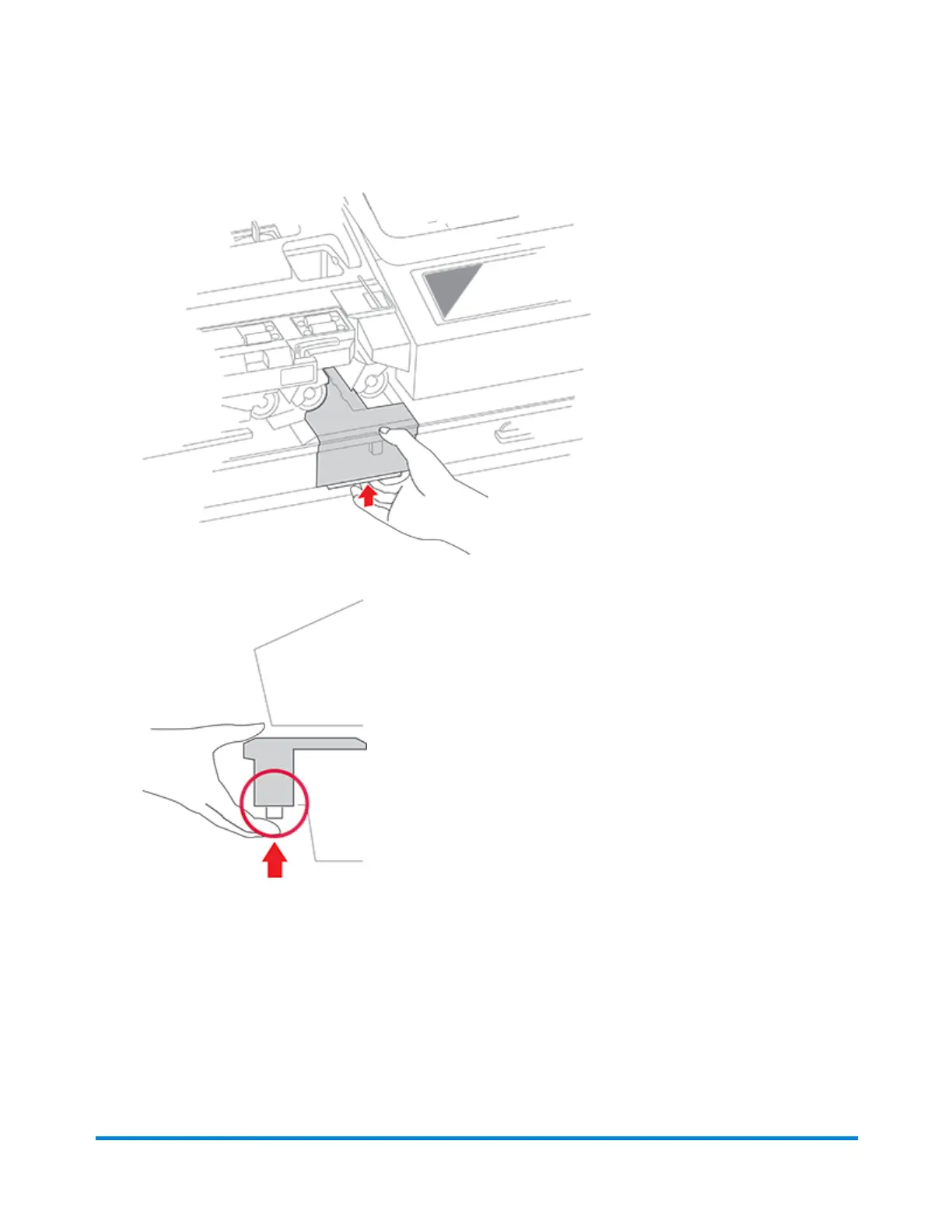 3. Grasp the moistener brush assembly and depress the moistener release button as shown here.