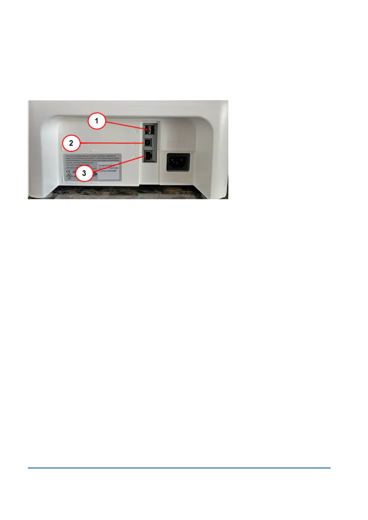 1. USB port type A host - Connect a Barcode scanner or external scale to these ports.