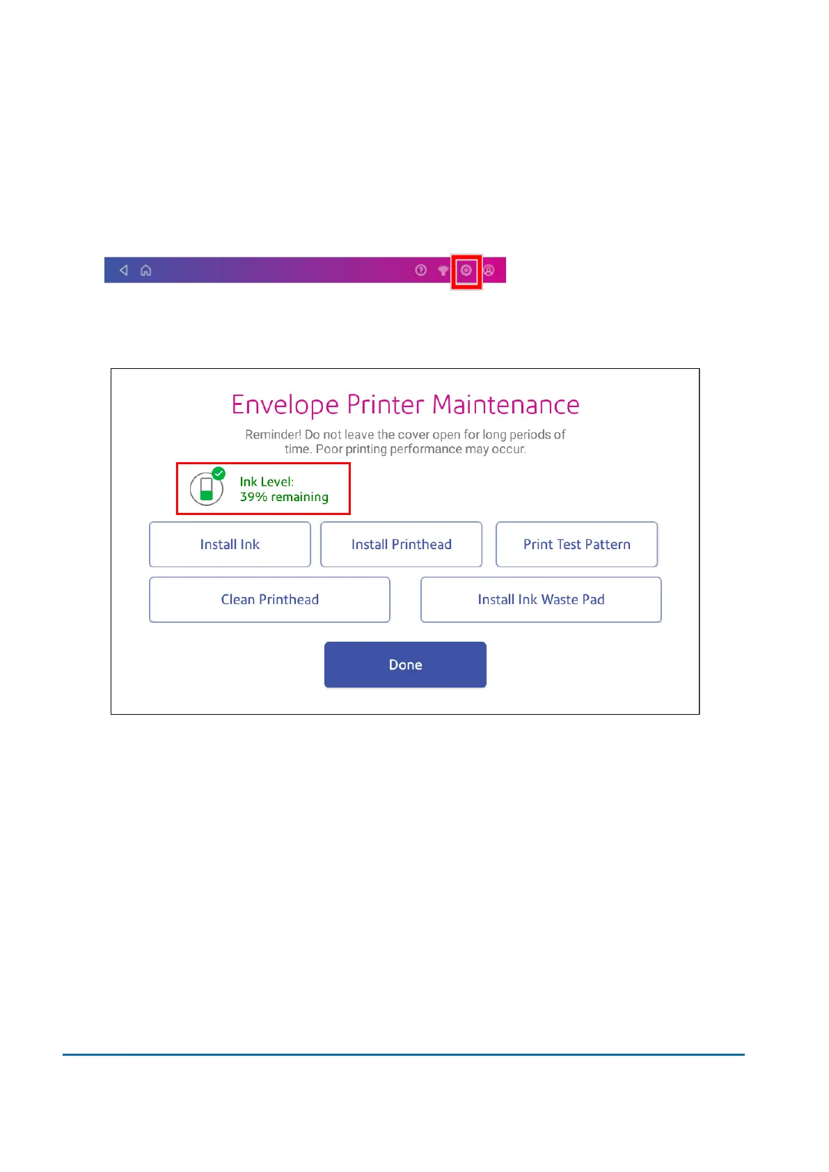 2. Scroll down and tap Envelope Printer Maintenance.