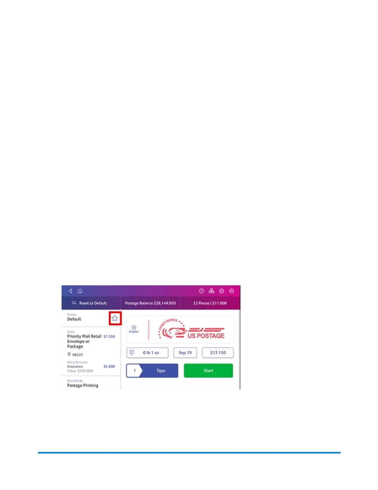 Create presets to store a group of commonly-used settings. Presets can store settings such as a postage