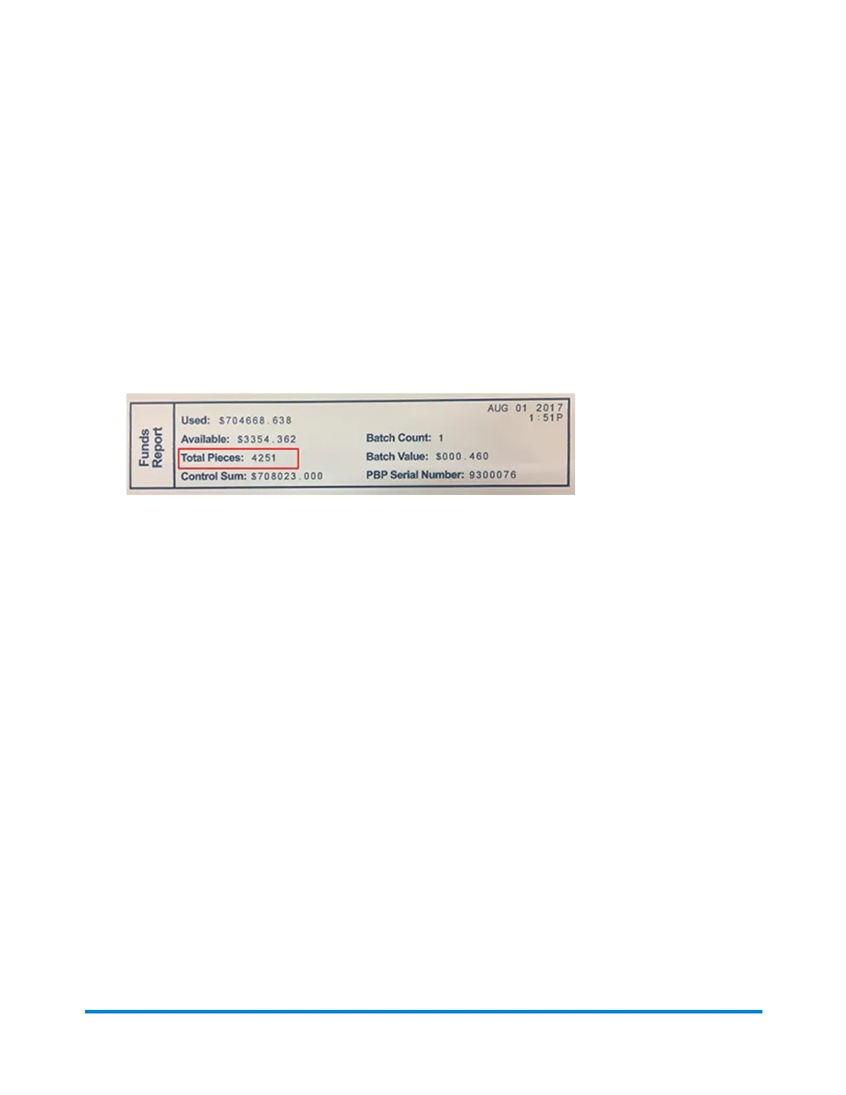 5. A funds report prints showing the total number of pieces sent.
