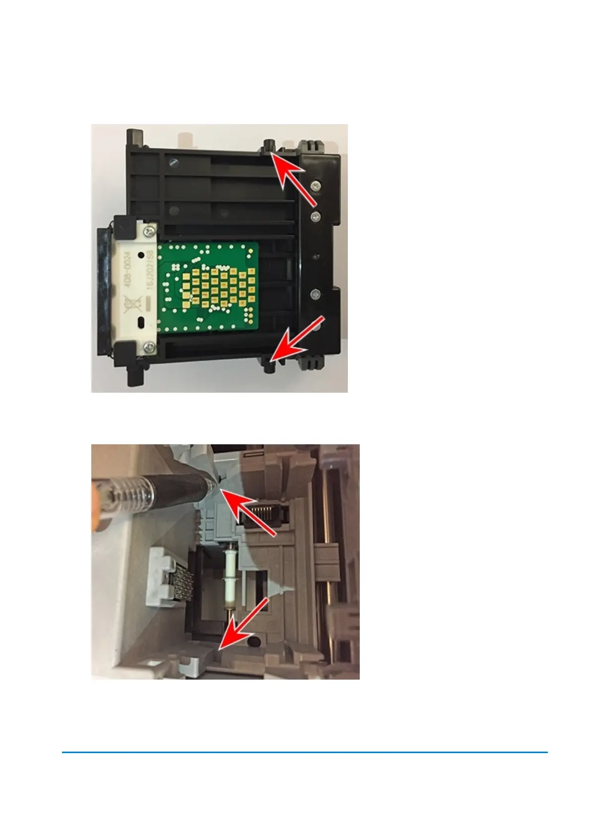 11. Examine the printhead holder and note the location of the lower printhead alignment slots.