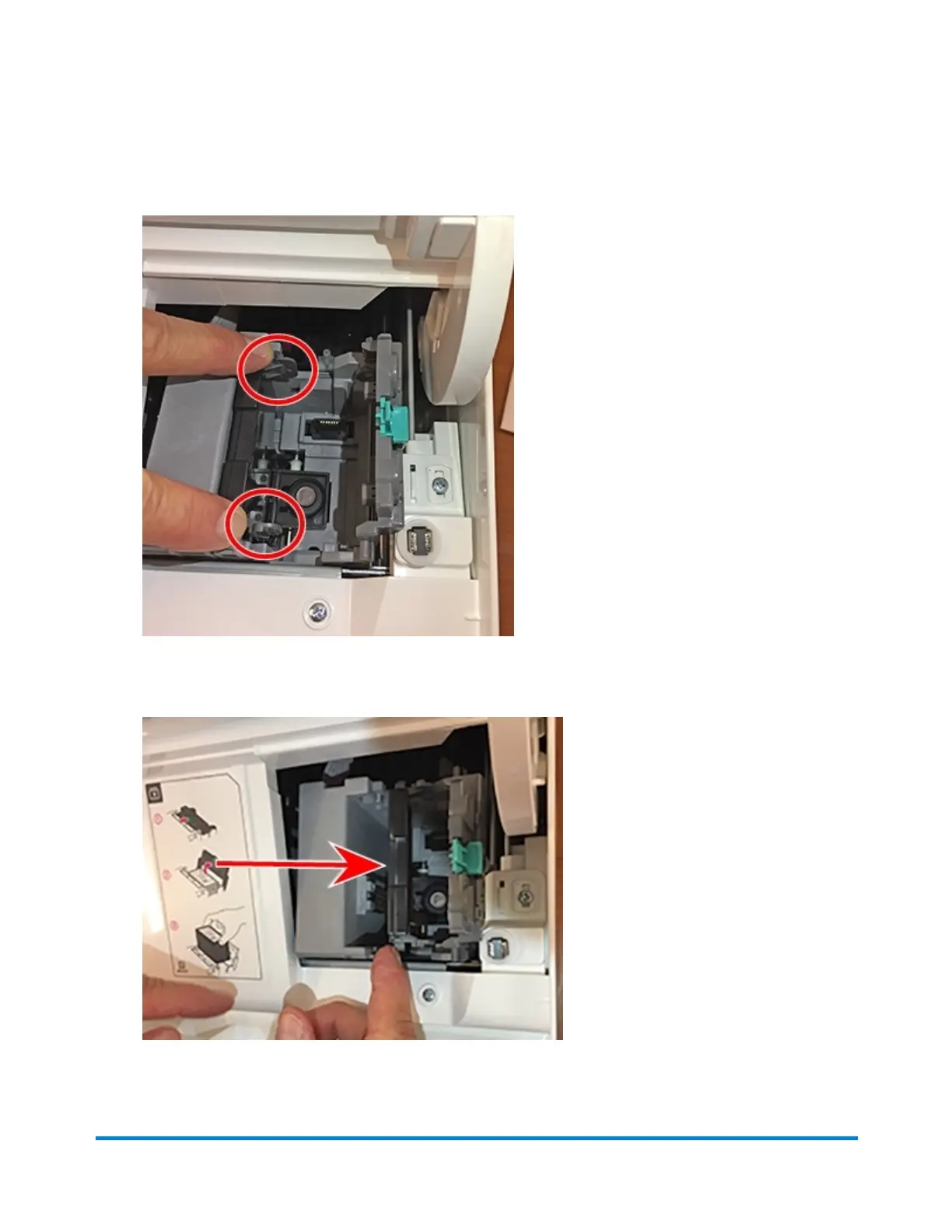 7. Squeeze the tabs on either side of the printhead.