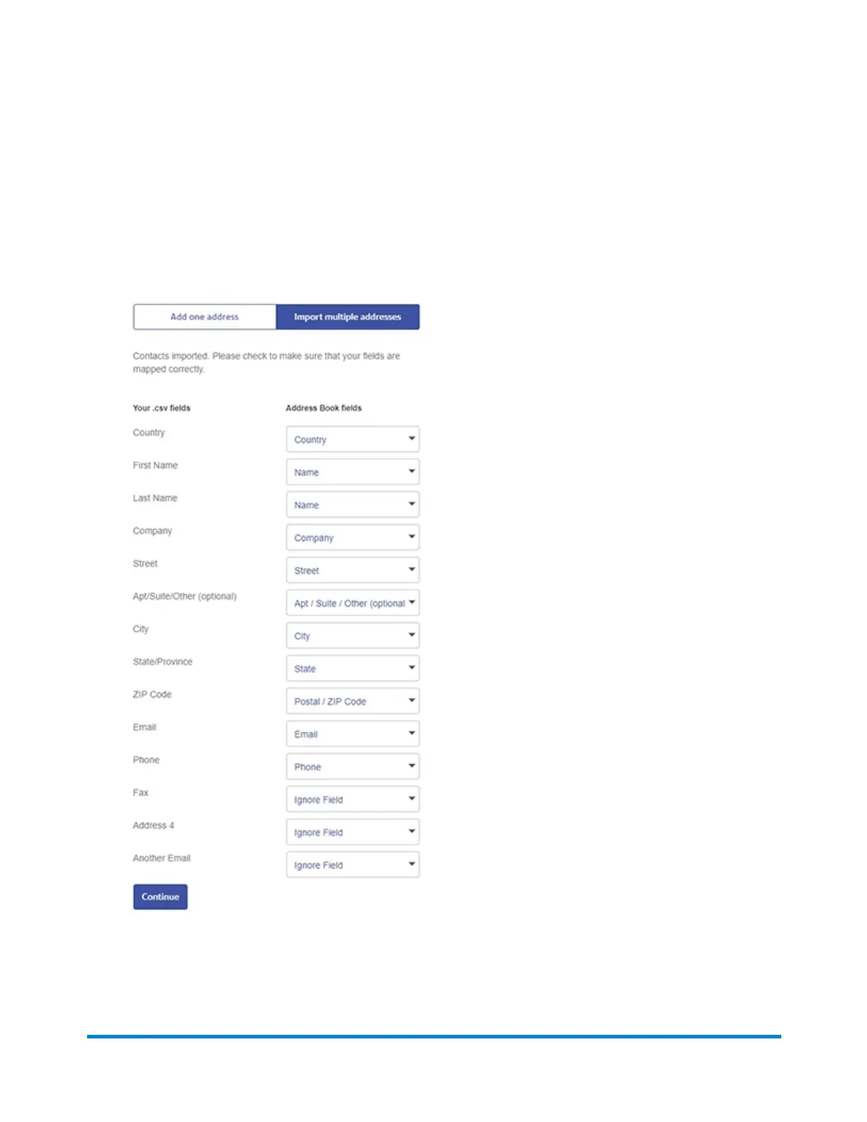 9. Select Continue to import your address data. The addresses will now appear in your Address