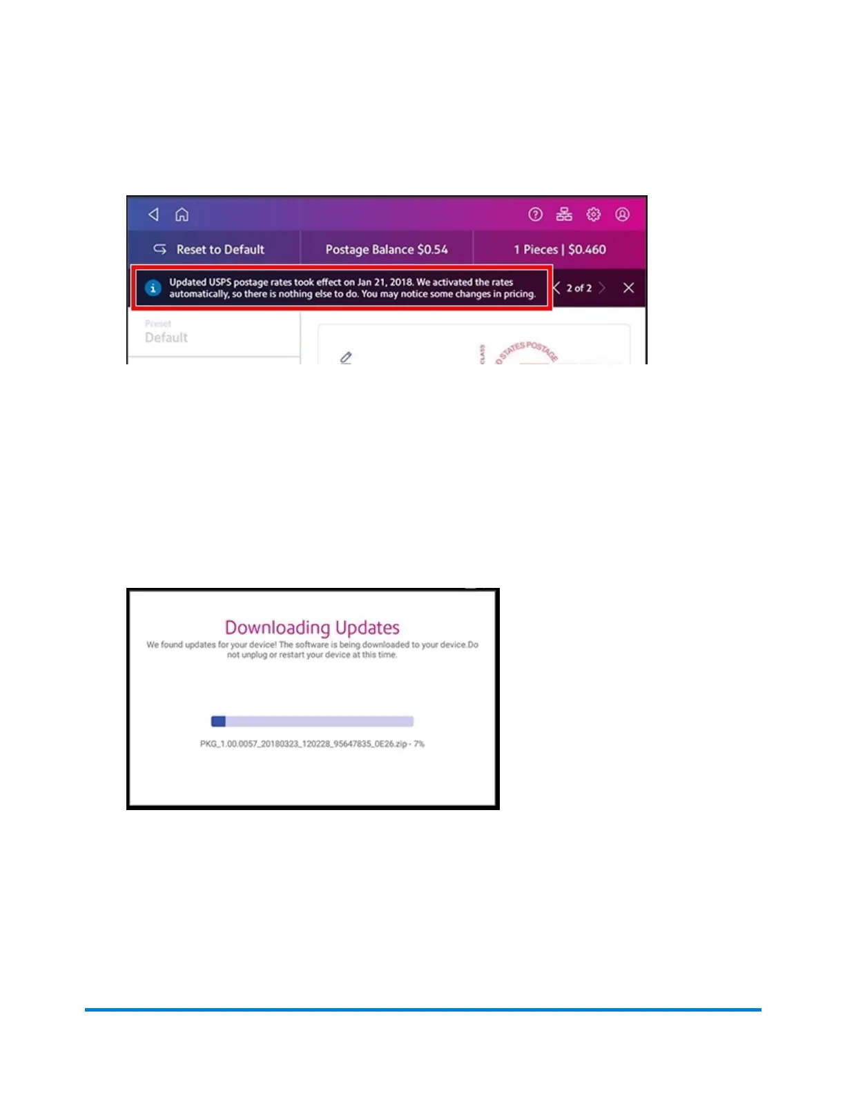 up to access the second row of buttons. If an update is available the SendPro® C-Series will