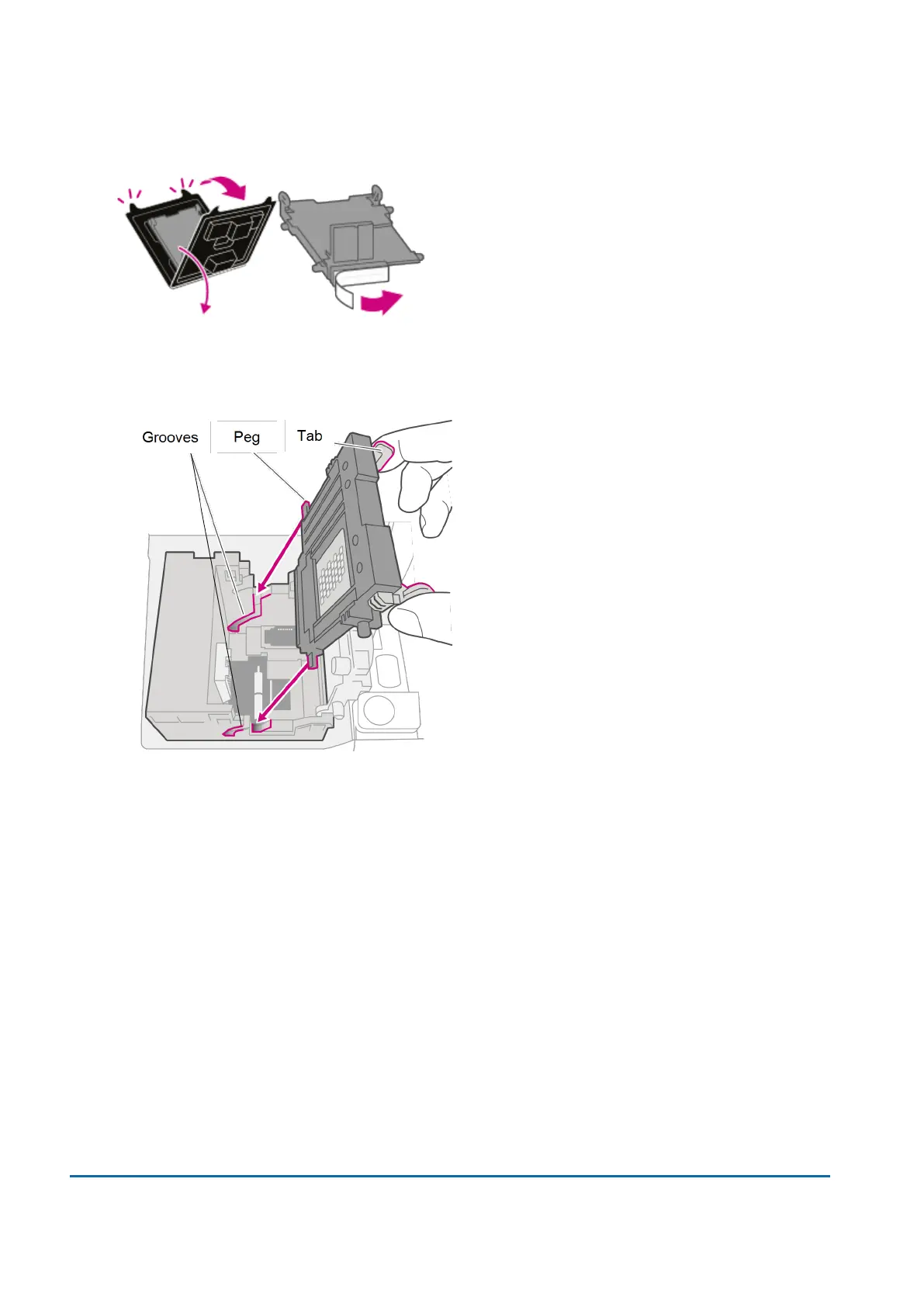 5. Squeeze the tabs and slide the printhead pegs into the lower set of grooves.