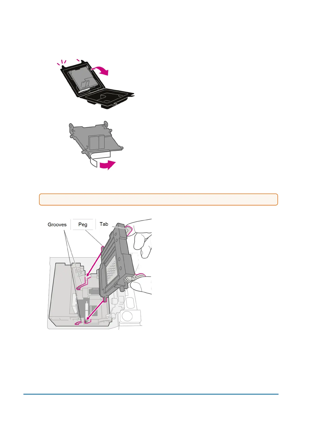10. Squeeze the tabs and slide the printhead pegs into the lower set of grooves.