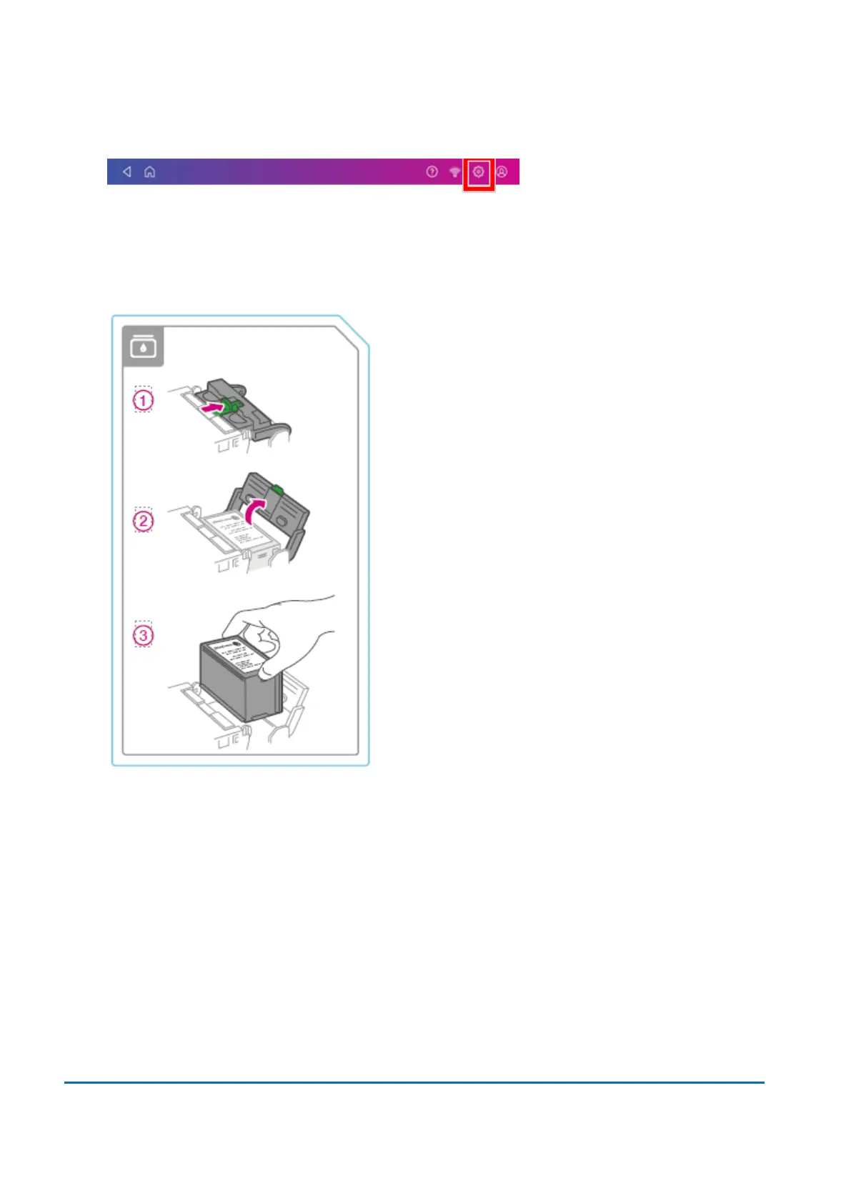 4. Lift the top cover. The ink cartridge moves to the front position.