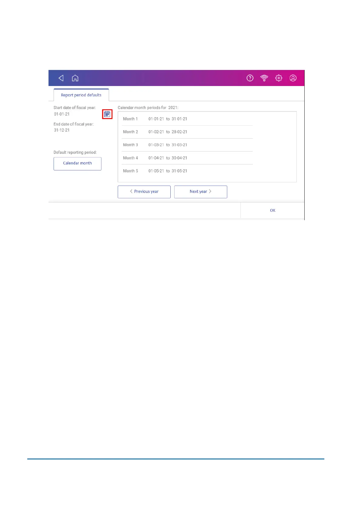 6. (Optional)Tap Previous year and Next year to view the reporting periods for the previous and
