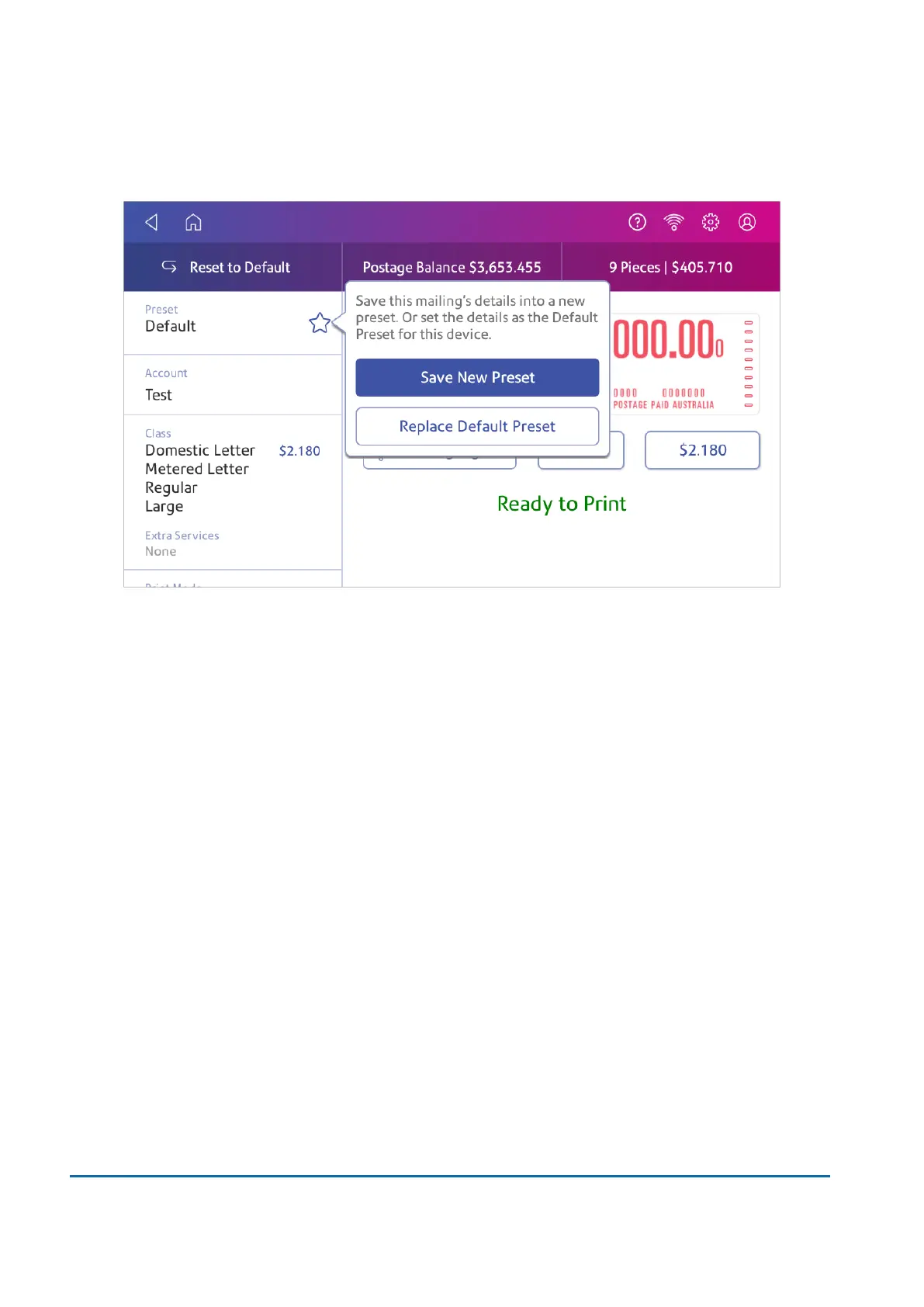 Modifying presets for printing postage