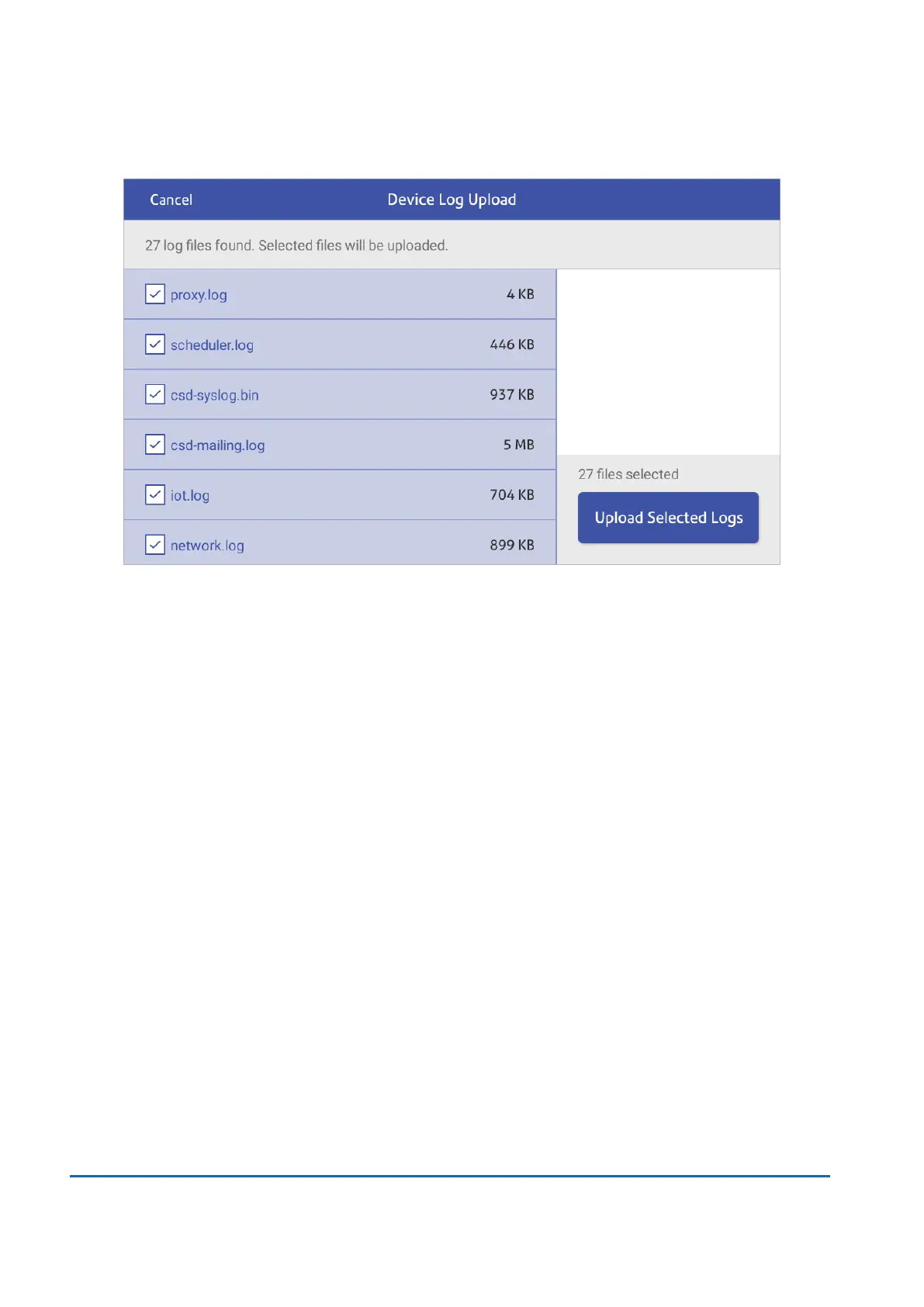 5. Tap Upload Selected Logs.
