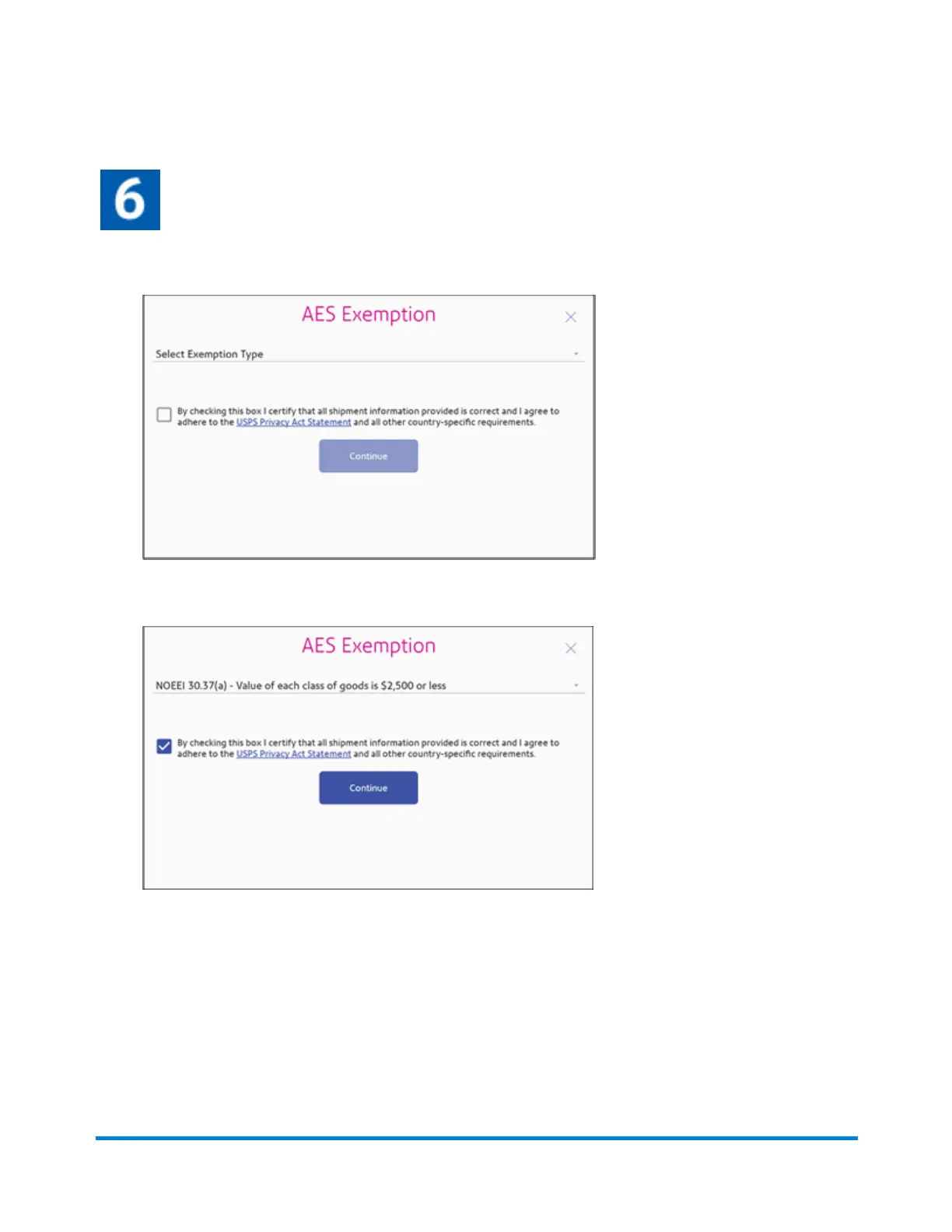 2. Tap on the checkbox to agree to the USPS Privacy Act Statement.