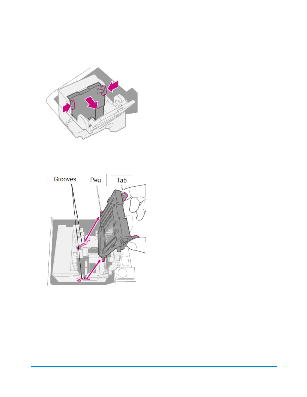 8. While squeezing, lift and tilt to the printhead to the right. The printhead should come up out of