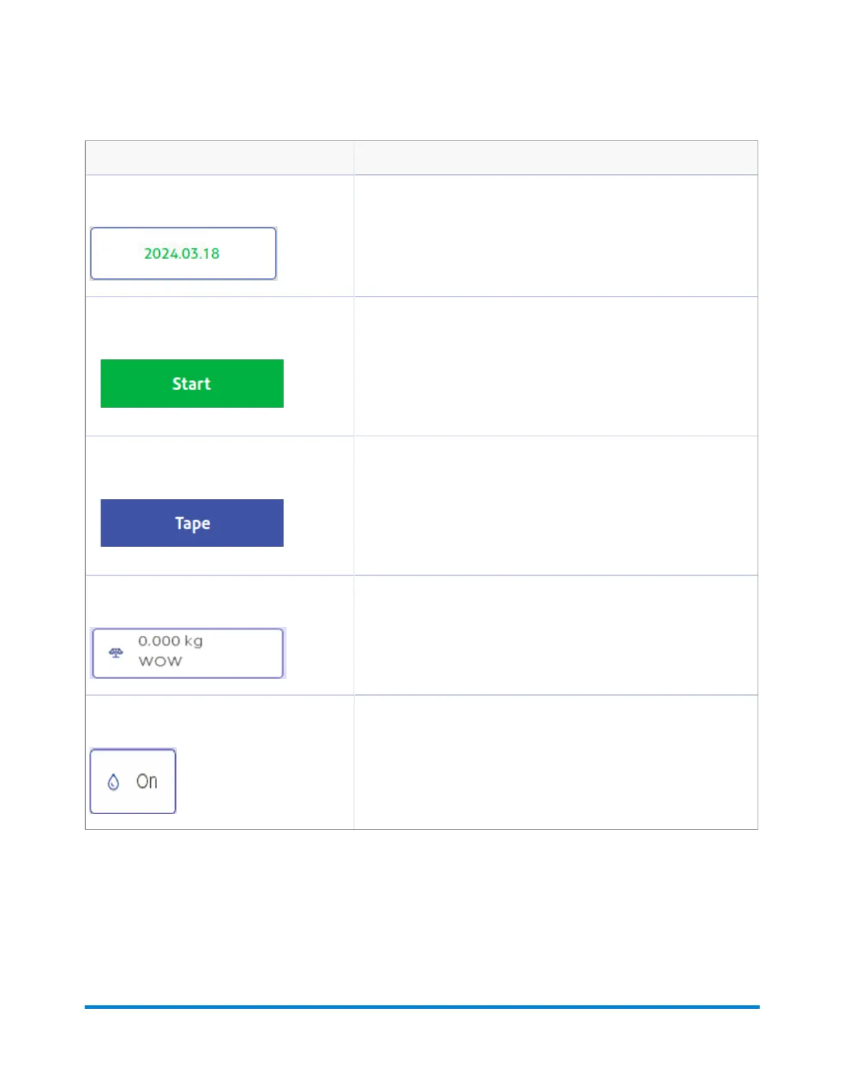 Weighing icon The weighing icon opens the weighing method dialog screen. The shape