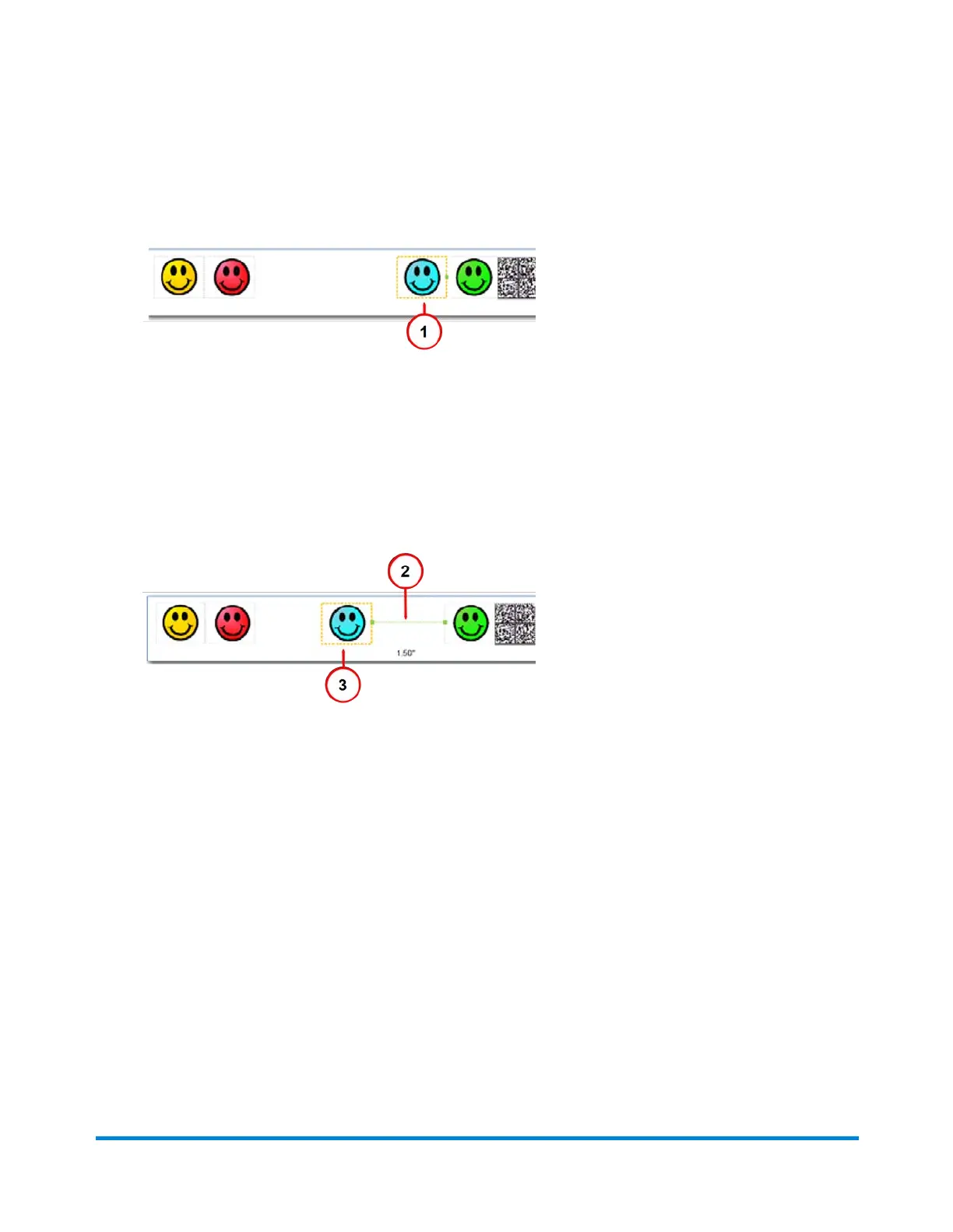 2. Select the graphic you want to move (1). For this example, we select the right justified blue