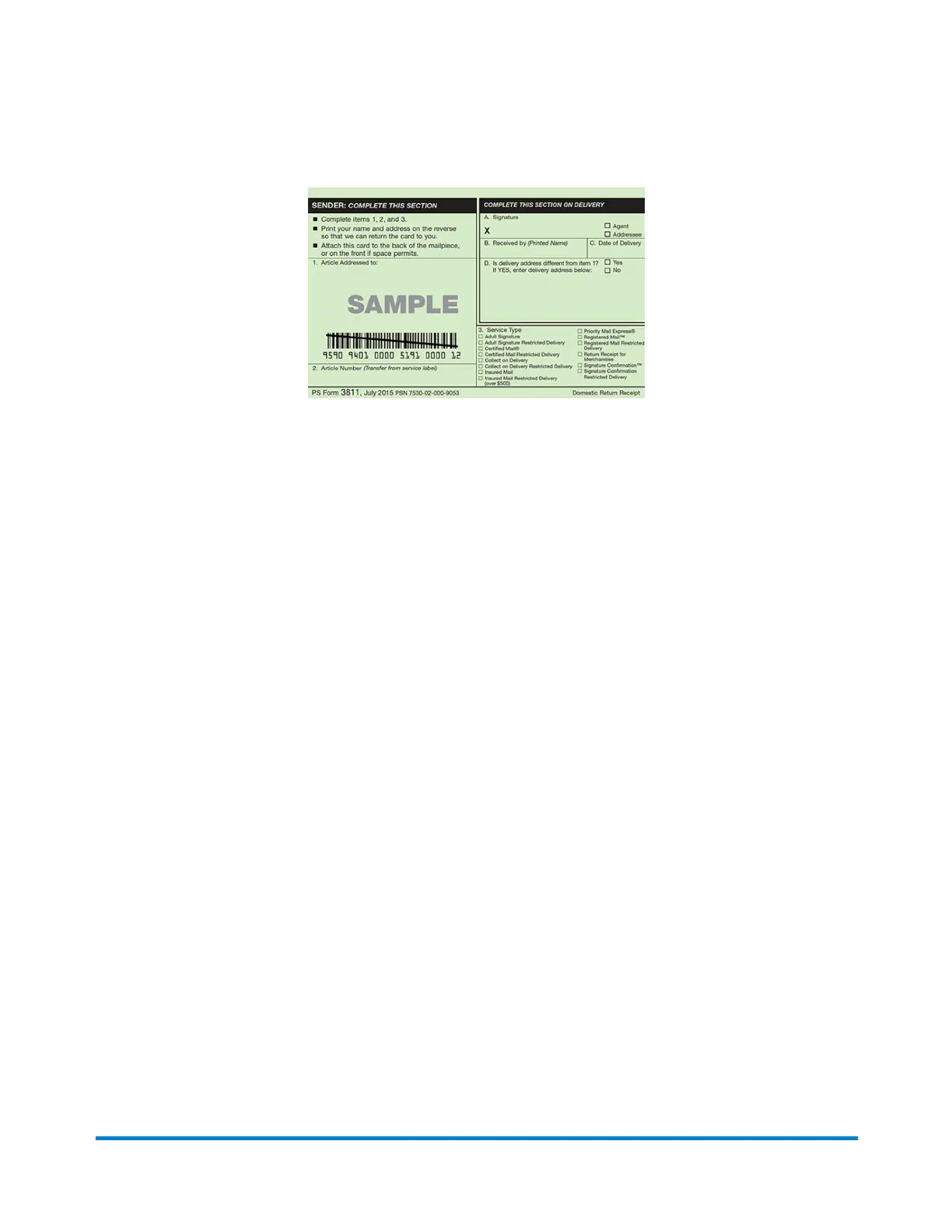 Electronic Delivery Confirmation. As soon as you select the service, a check mark appears in