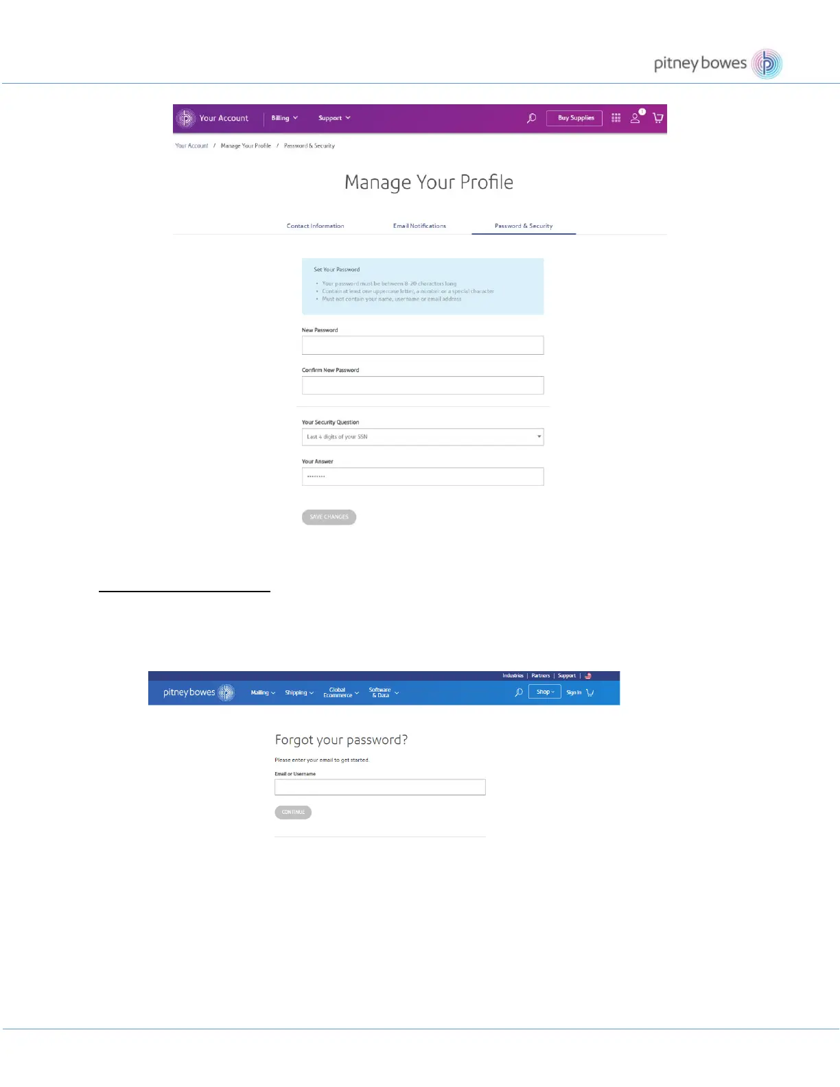 1. Go to https://www.pitneybowes.us/signin/logon.go?request_locale=en_US#/account/forgot-
