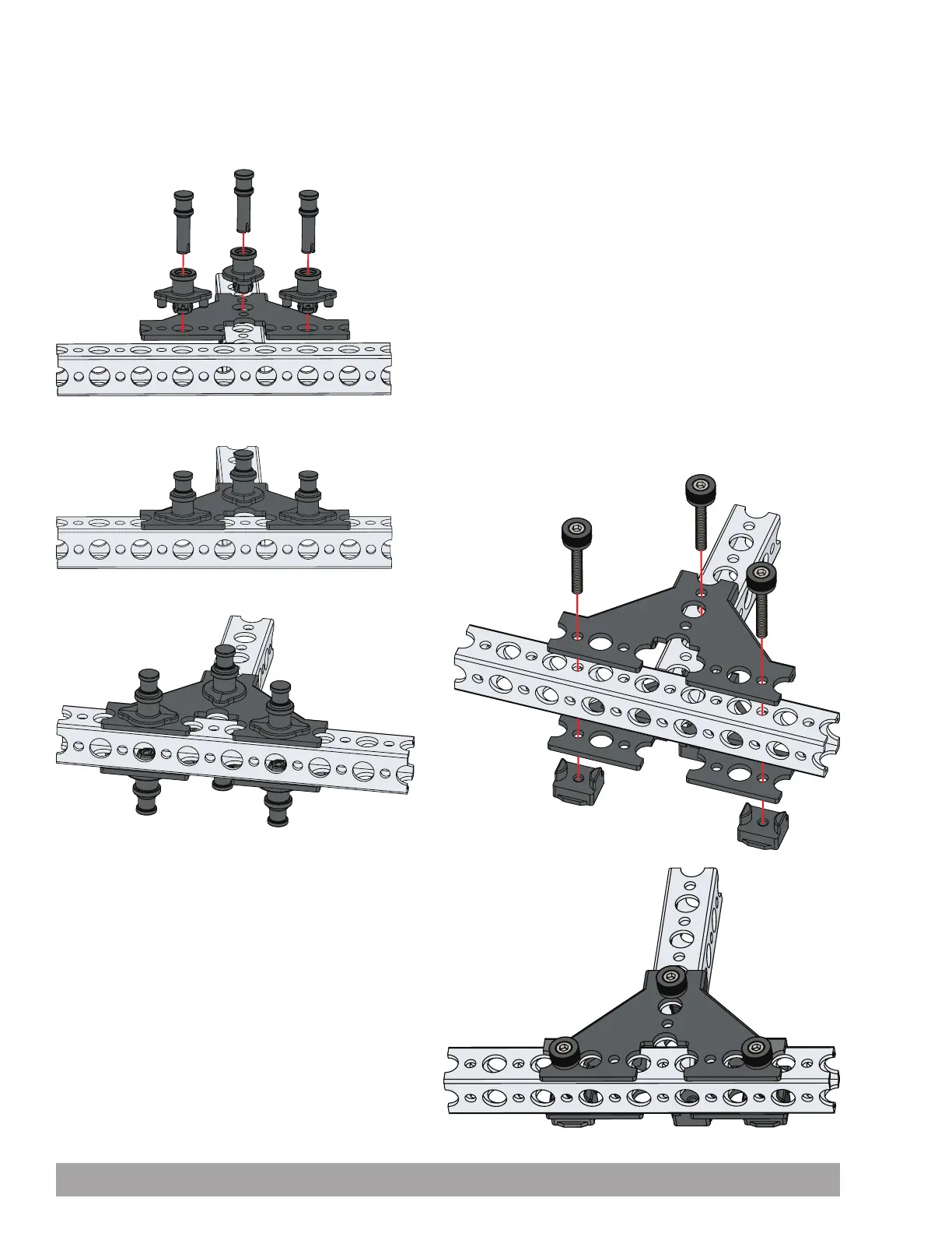 Brackets can also be used to connect beams. Brackets are available for a tee connection, 60-degree connection, or