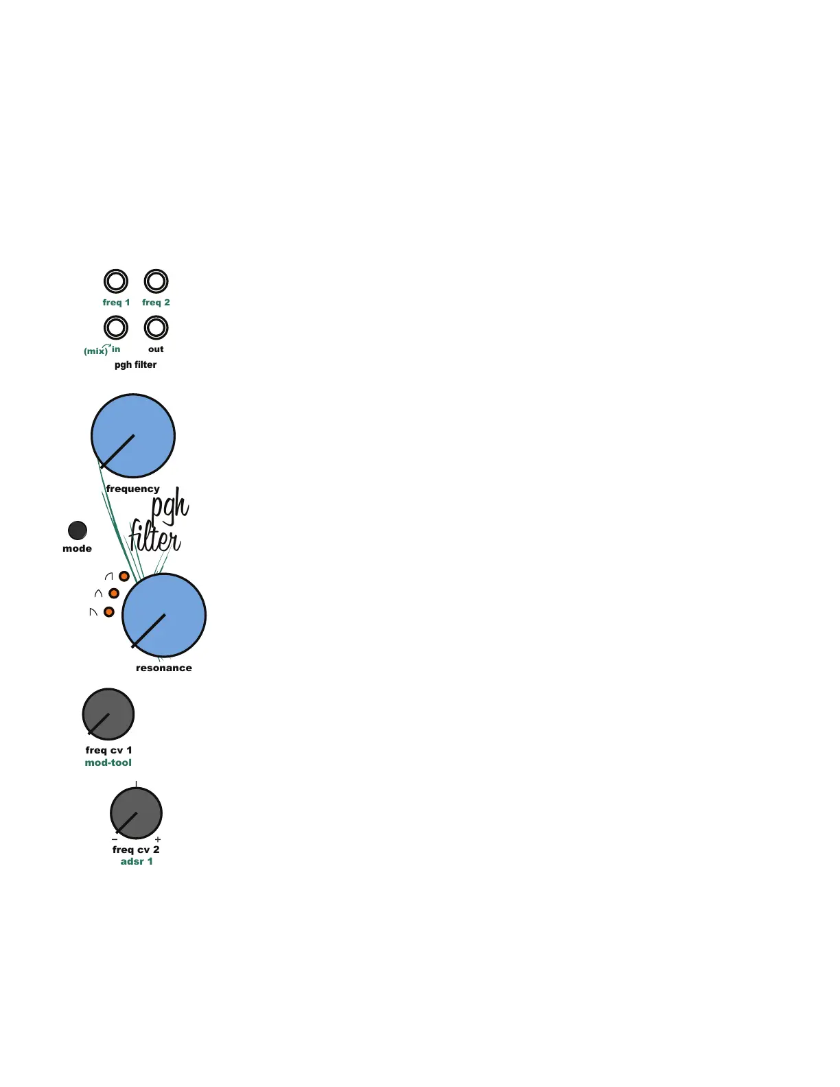 Jack] is normaled to the ADSR 1 output. Plugging a patch cable into the [Filter Frequency CV 2