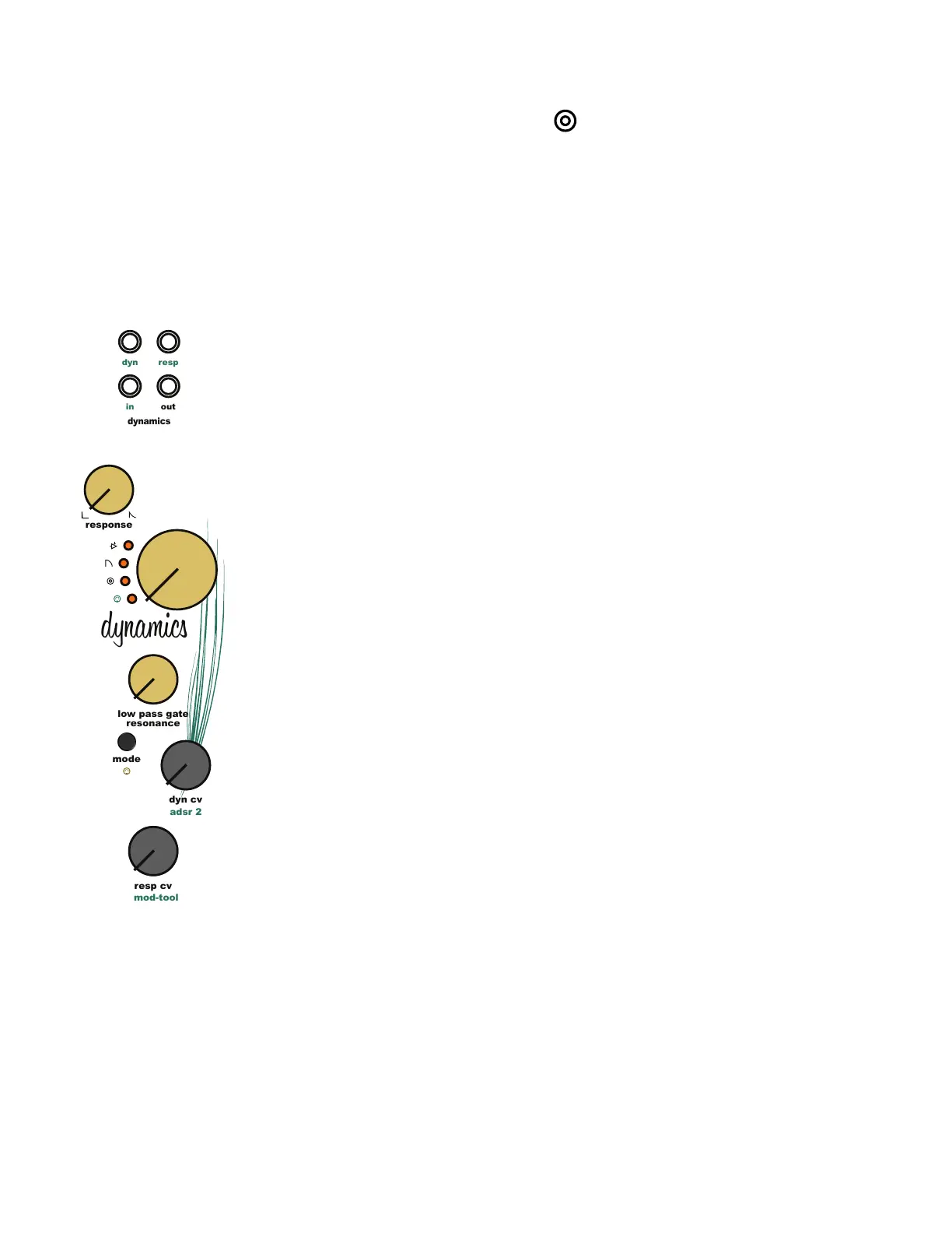 [Dynamics Response CV Input Jack] Response modulation input jack. The [Dynamics Response