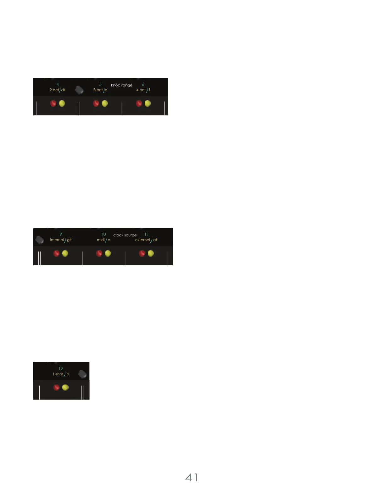 Knob range determines the number of available octaves that can be sequenced using the RED and YELLOW