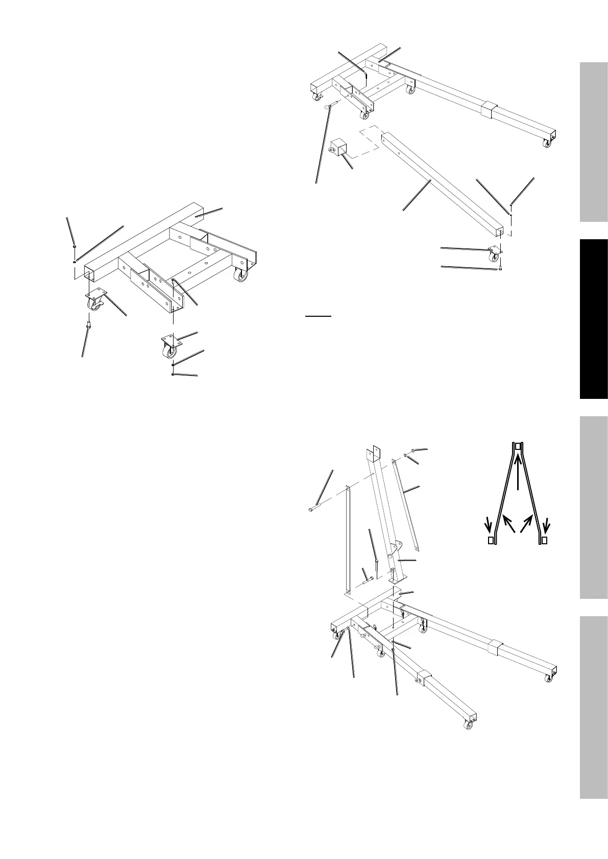 1. Attach the two 3-1/2″ Brake Casters(31) to the