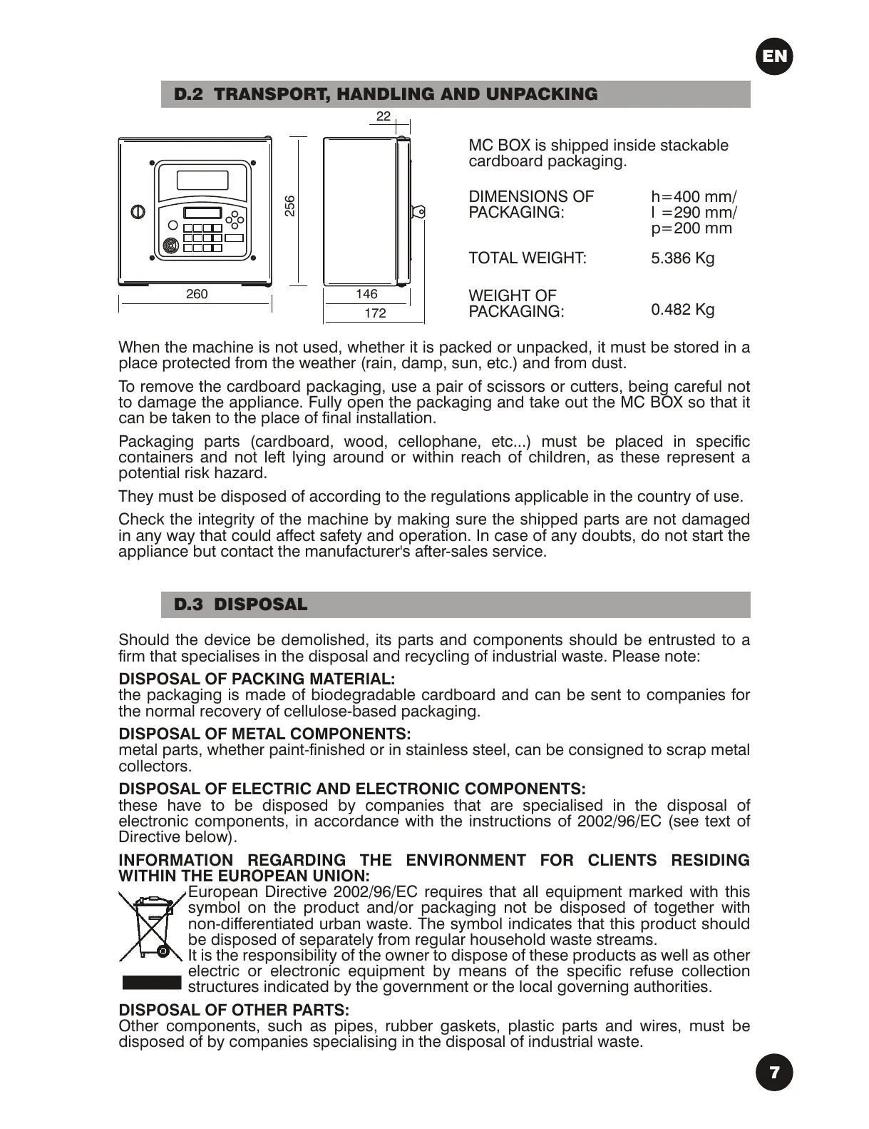 D.2TRANSPORT, HANDLING AND UNPACKING