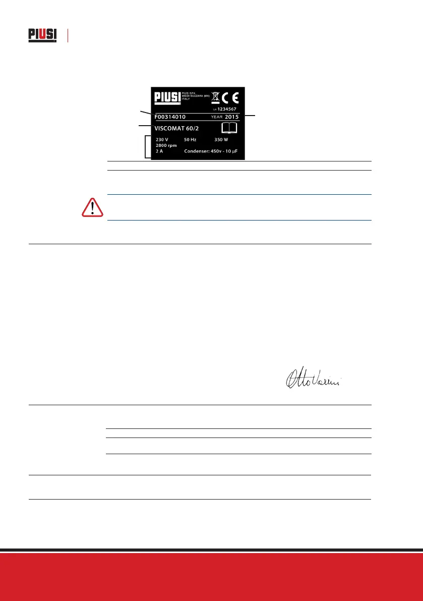 Anno di costruzione: riferirsi all’anno di produzione riportato sulla targa CE apposta sul prodoo.
