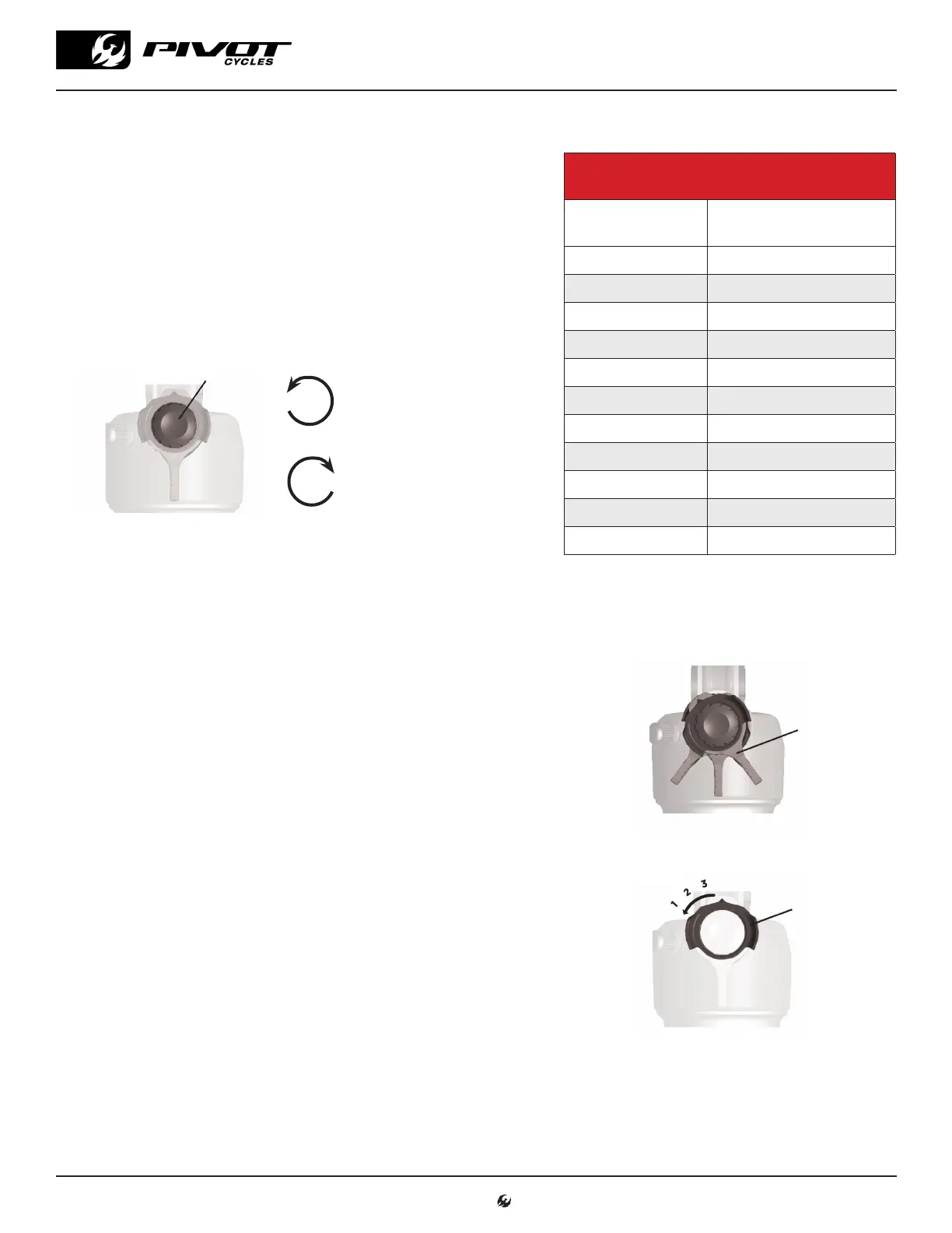 clockwise all the way out. Refer to the table on the right for the suggested