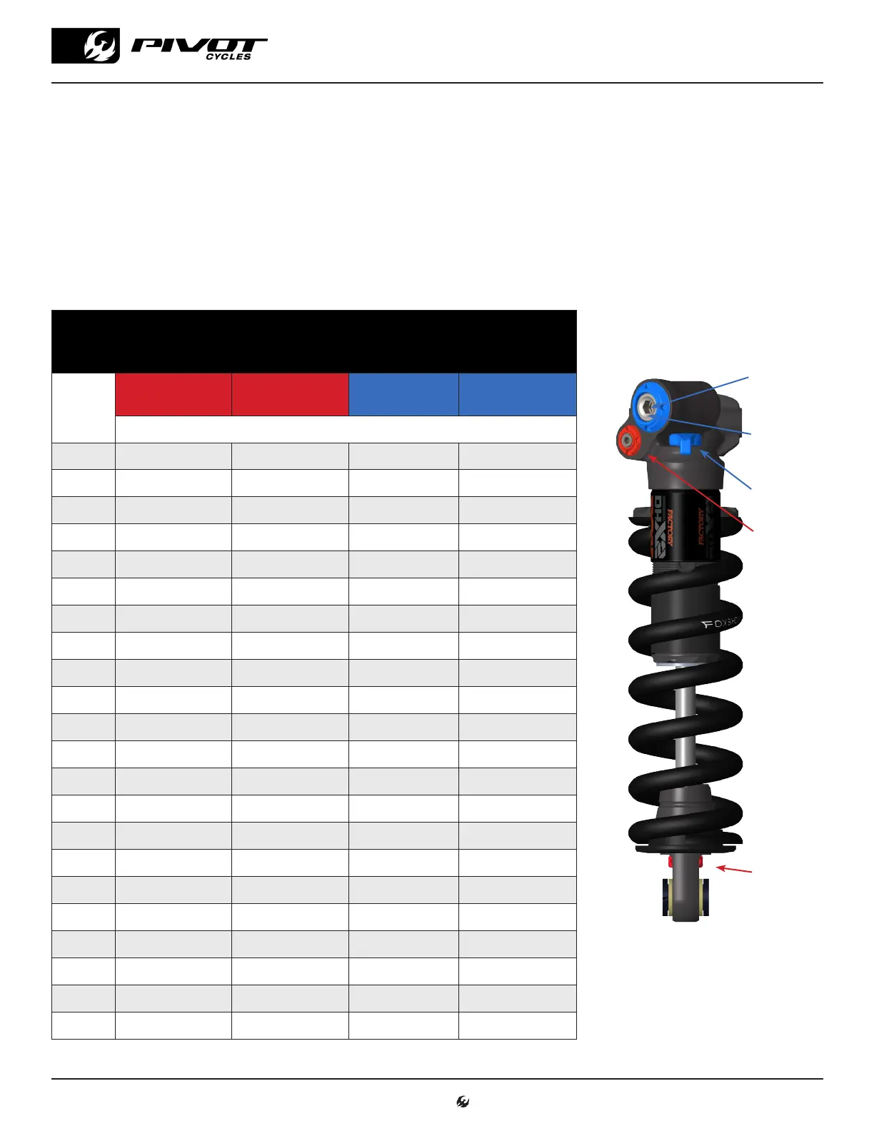 set. Fox sets up shocks from the closed position, so that has been provided in parentheses.