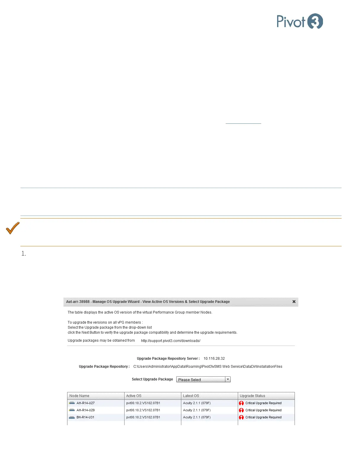 • Ensure there is access to the Internet or the latest Acuity software platform package from Pivot3.