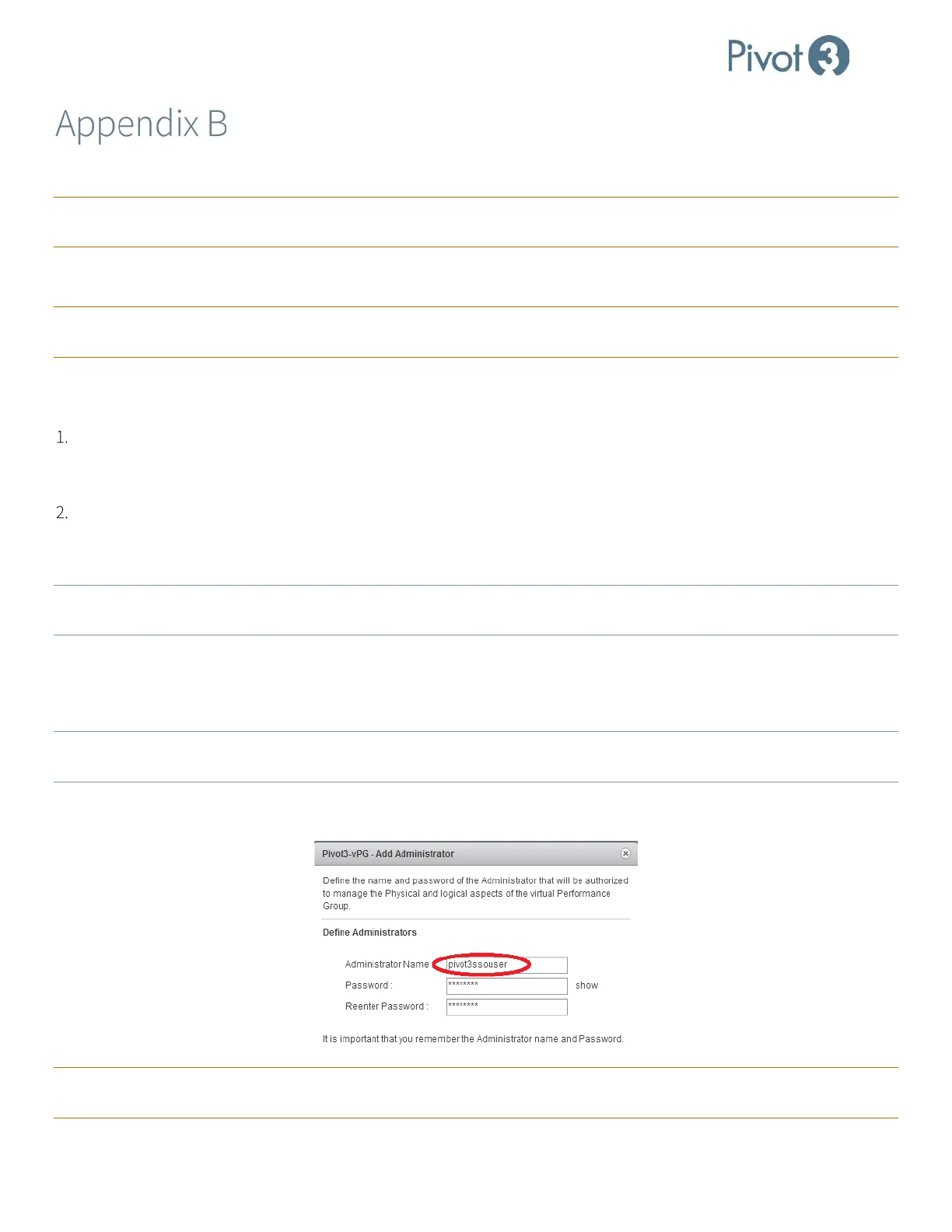 • Enter Administrator Name pivot3ssouser (required) and choose a password that will not be forgotten. (If the