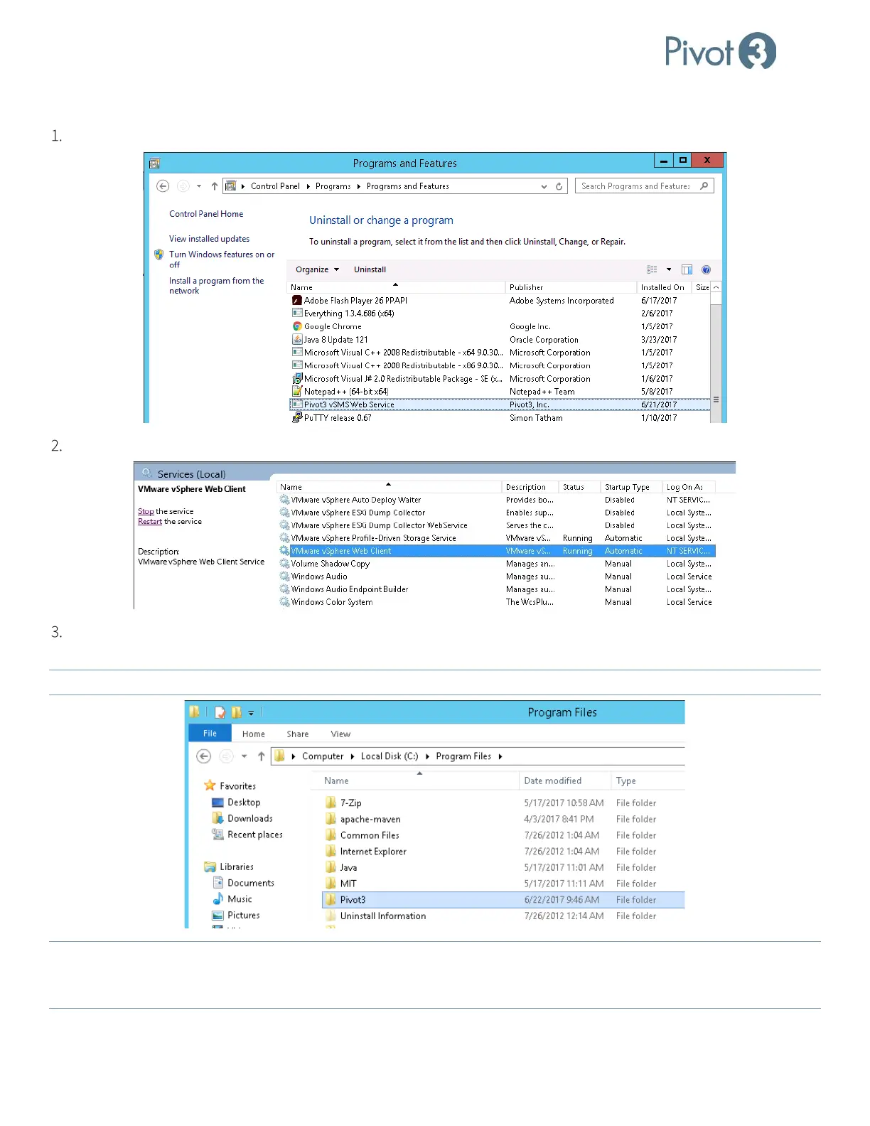 Files\Pivot3. Delete the entire folder.