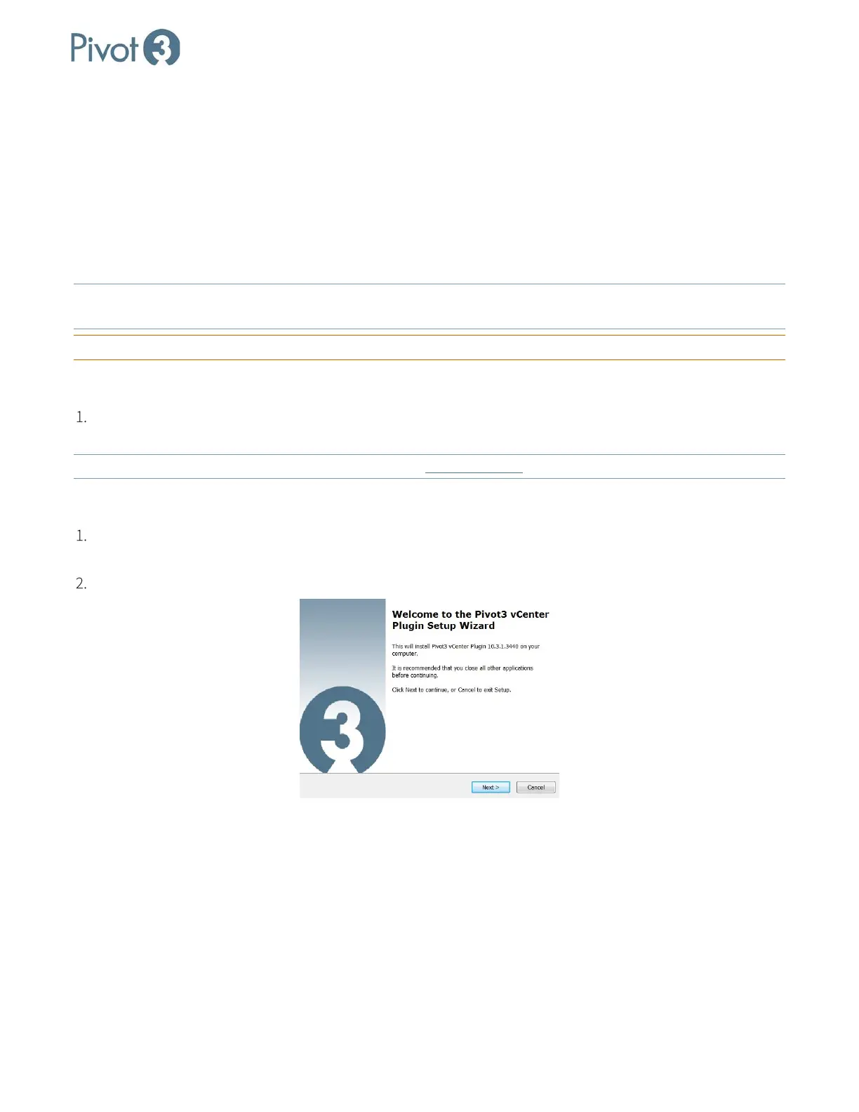 • Plugin installation package from Pivot3