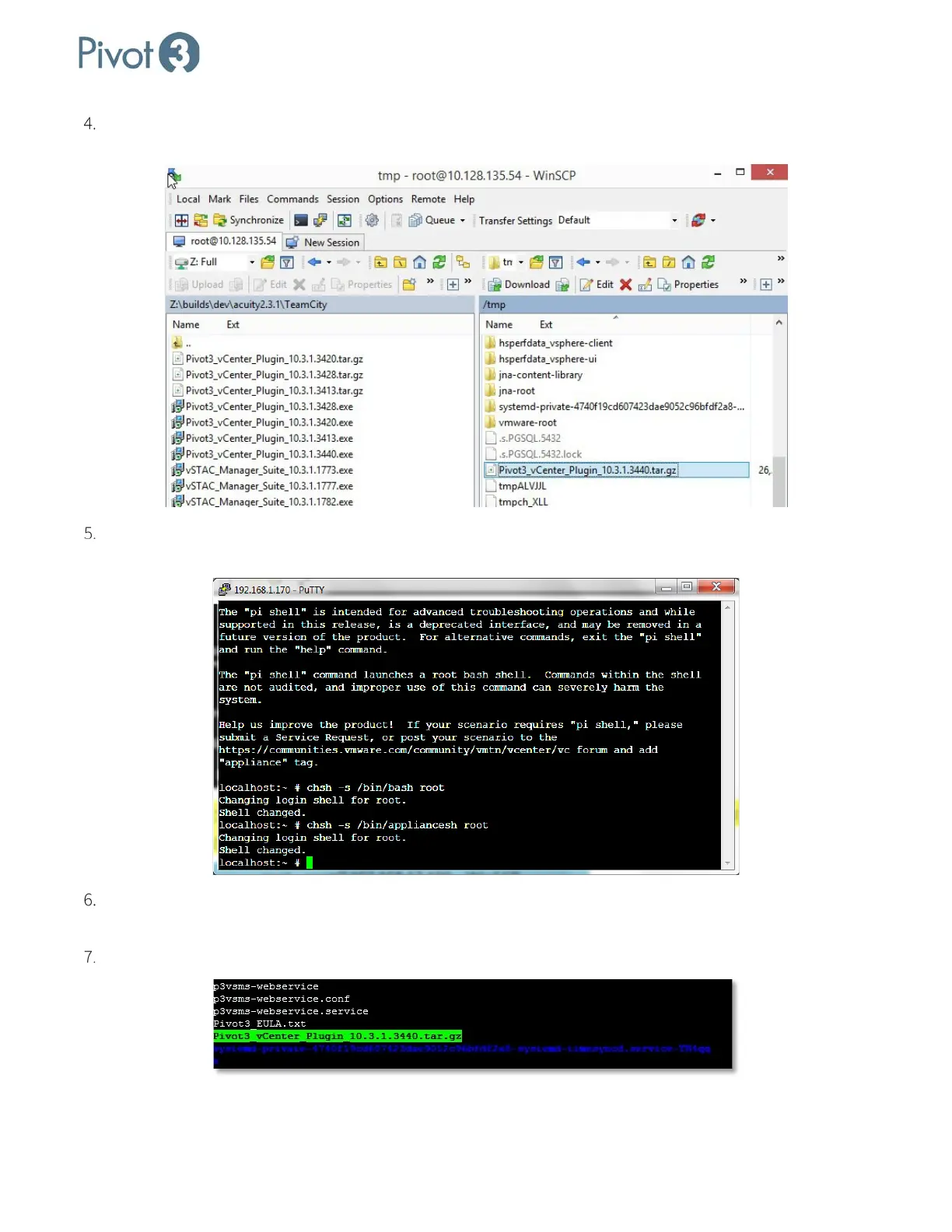 Multiple files will be listed. Ensure Pivot3_vCenter_Plugin_10.3.1.[####].tar.gz is one of them.