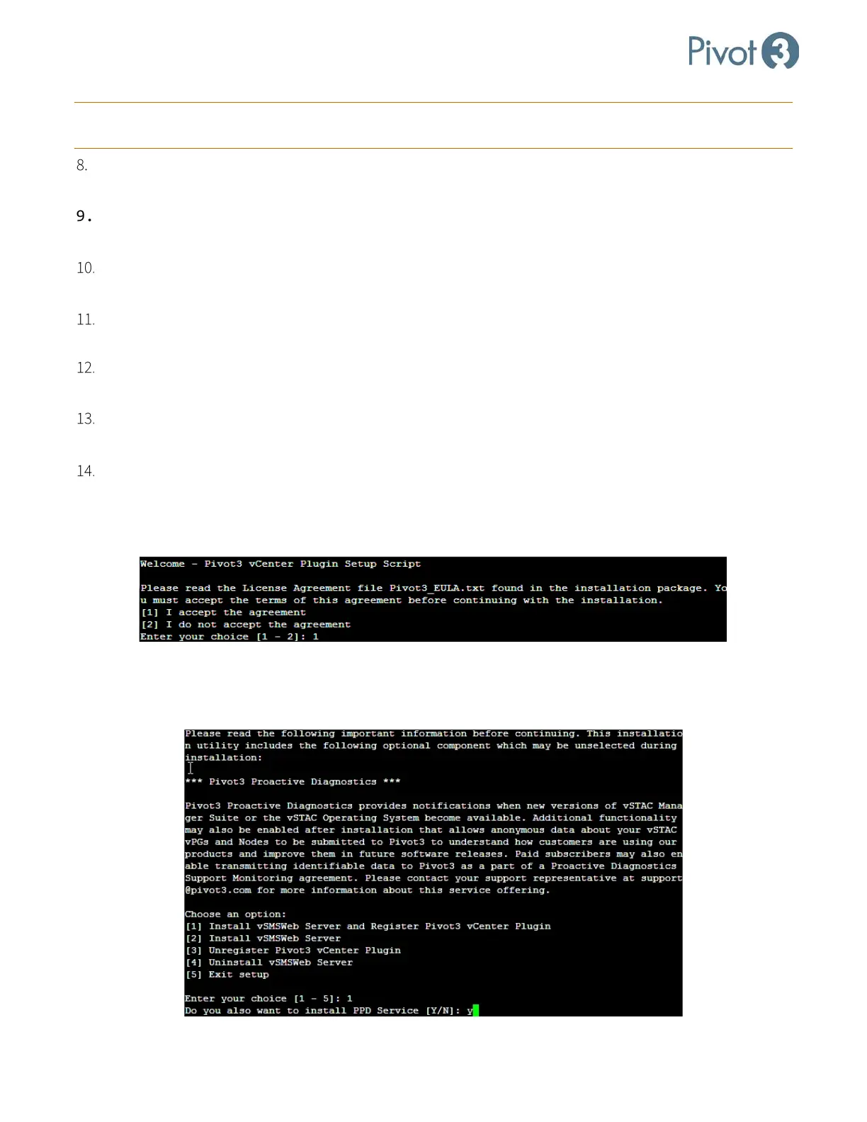 a. Read the License Agreement file Pivot3_EULA.txt that was sent with the installation package. To accept