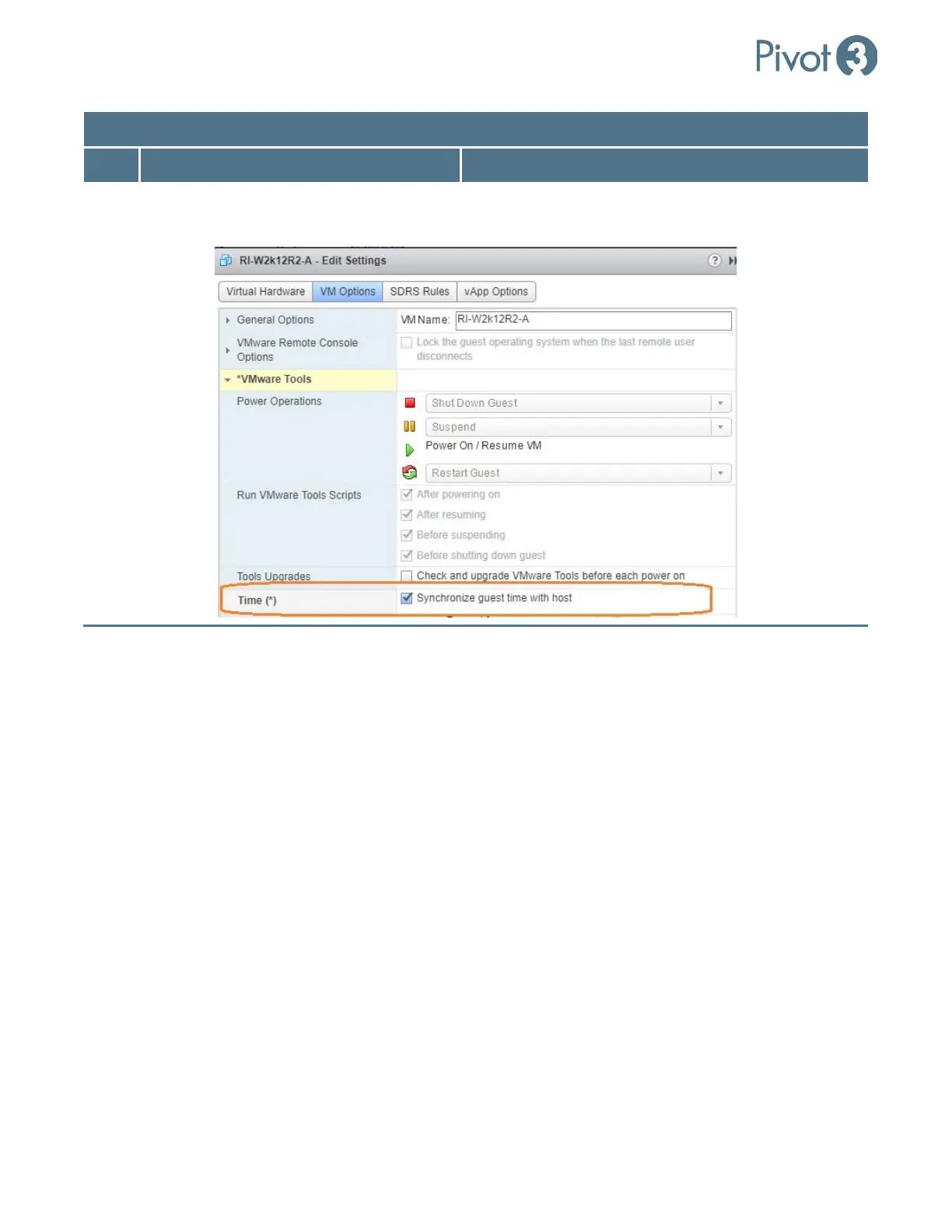 2 Activate synchronization option VM Options tab > Synchronize guest time with host >