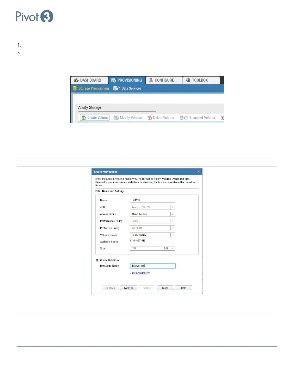 There are two ways to initiate the creation of an Acuity volume. The first is through the Provisioning tab.