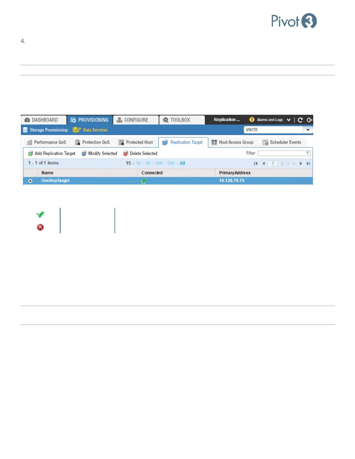 Once a replication target has been successfully created, it can be accessed from the Provisioning tab > Data Services